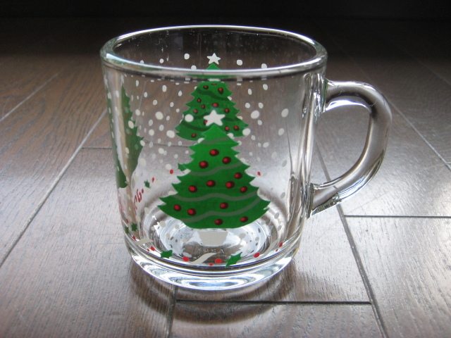 ファイヤーキング アンカーホッキング  ガラスマグ  クリスマスツリー 雪です。