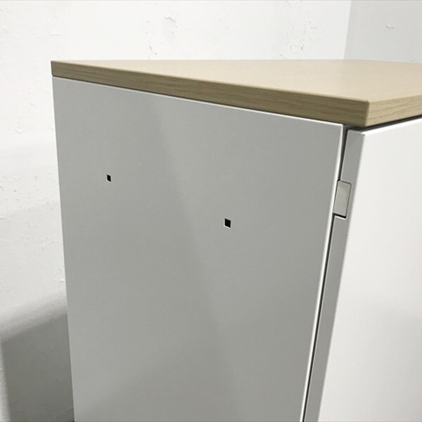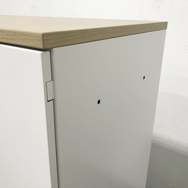■取り扱い番号 CR-877320B ■仕様 メーカー : コクヨ 製品名 : EDIA 色素材 : ホワイト 外寸 : 幅900mm 奥行き450mm 高さ1130mm ランク : Bランク ■特徴 ベース付 棚板2枚 天板:メラミン化粧板 各段にA4ファイルがすっきり収納出来るので書類やデータファイルなどの収納、整理に便利です。180°開閉可能で、物の出し入れが容易。さらにラッチ付で耐震性も備えています。 |