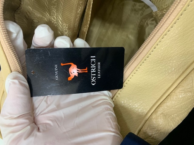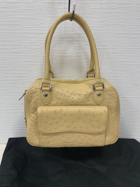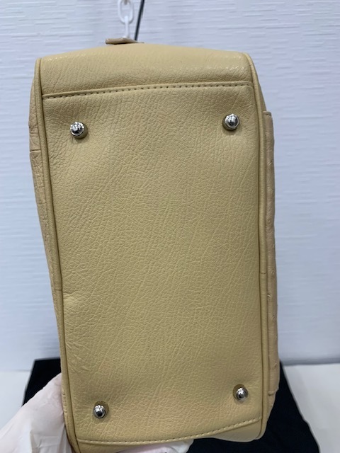 ☆1000円セール☆RODANIA ロダニア オーストリッチ 2WAY ハンドバッグ ショルダーバック クロスボディ トート クリーム系◆33731