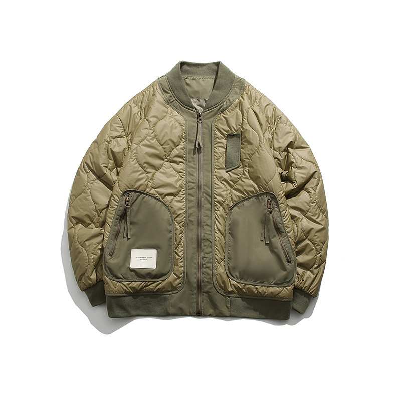 新作人気品キルティング 中綿フライトジャケット 羽織 ビッグポケット軽い メンズ 防寒新品ライトアウタークロ 緑 XL
