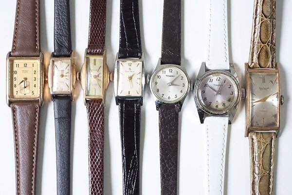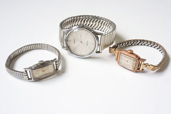 リュウズが引けずまわして時間合わせ不可、風防はずれ