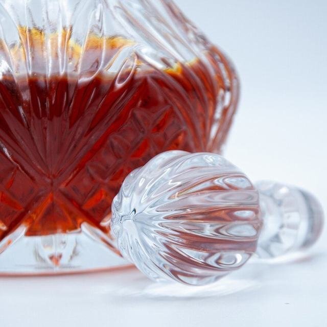 【蓋付き】ボトルの蓋と口がバフ磨きで密封性が高くなり、ウイスキーやブランデーの香りと風味をしっかり保存します。