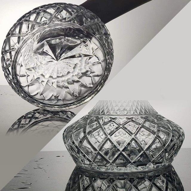 格子模様のカットがテーブルに高級感をプラスしてくれます。つい、手にとって使いたくなるきれいなウィスキーデカンタです。カットも飾りではなくて滑り止めの効果もあります。