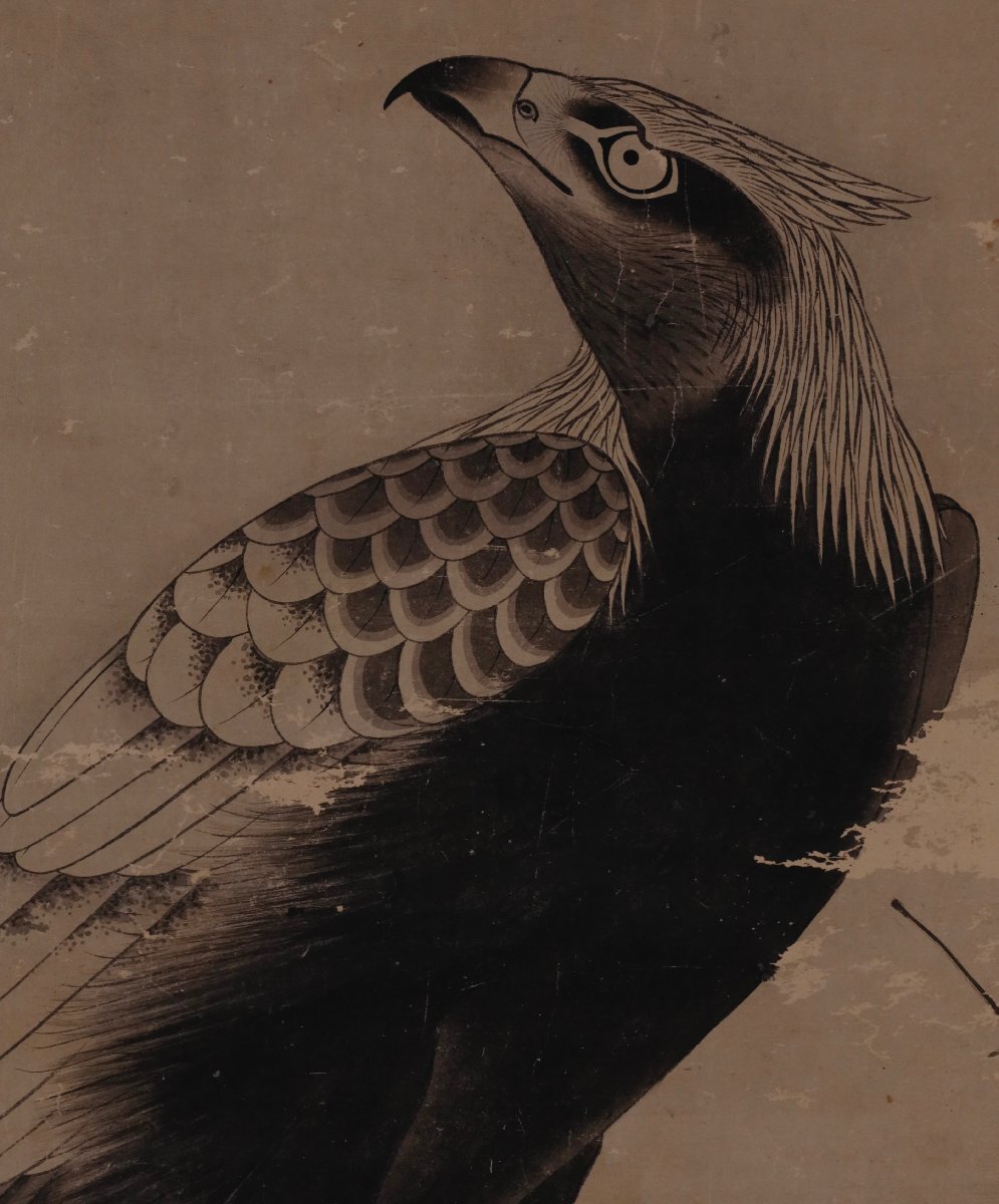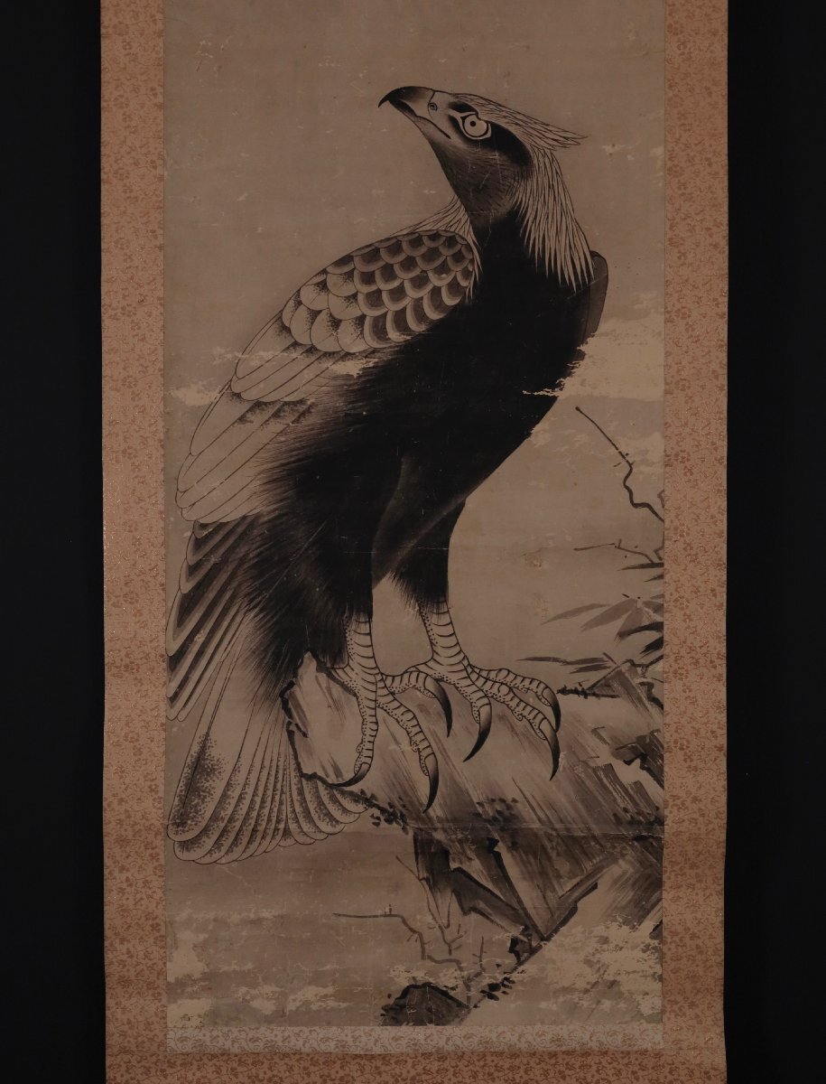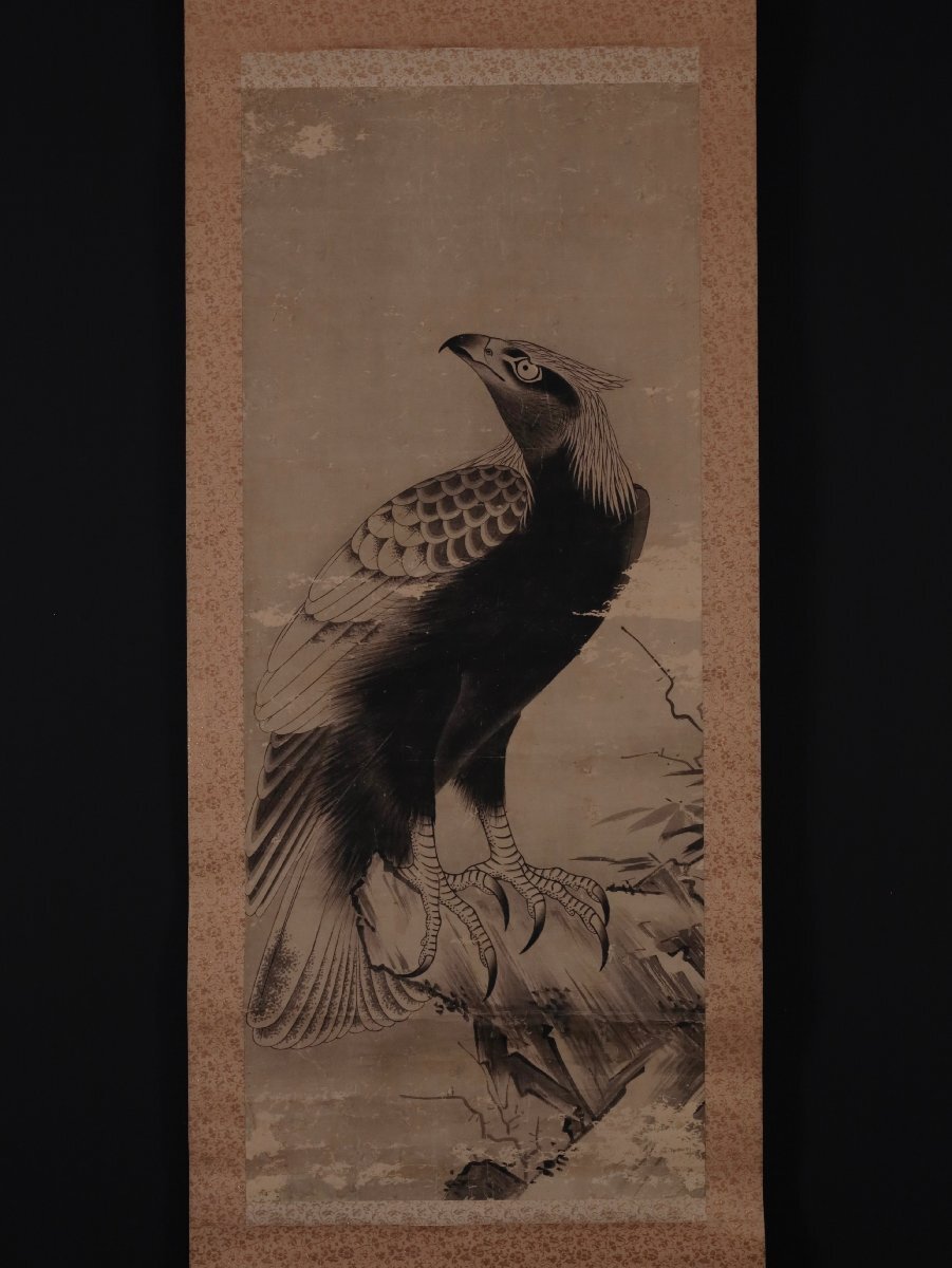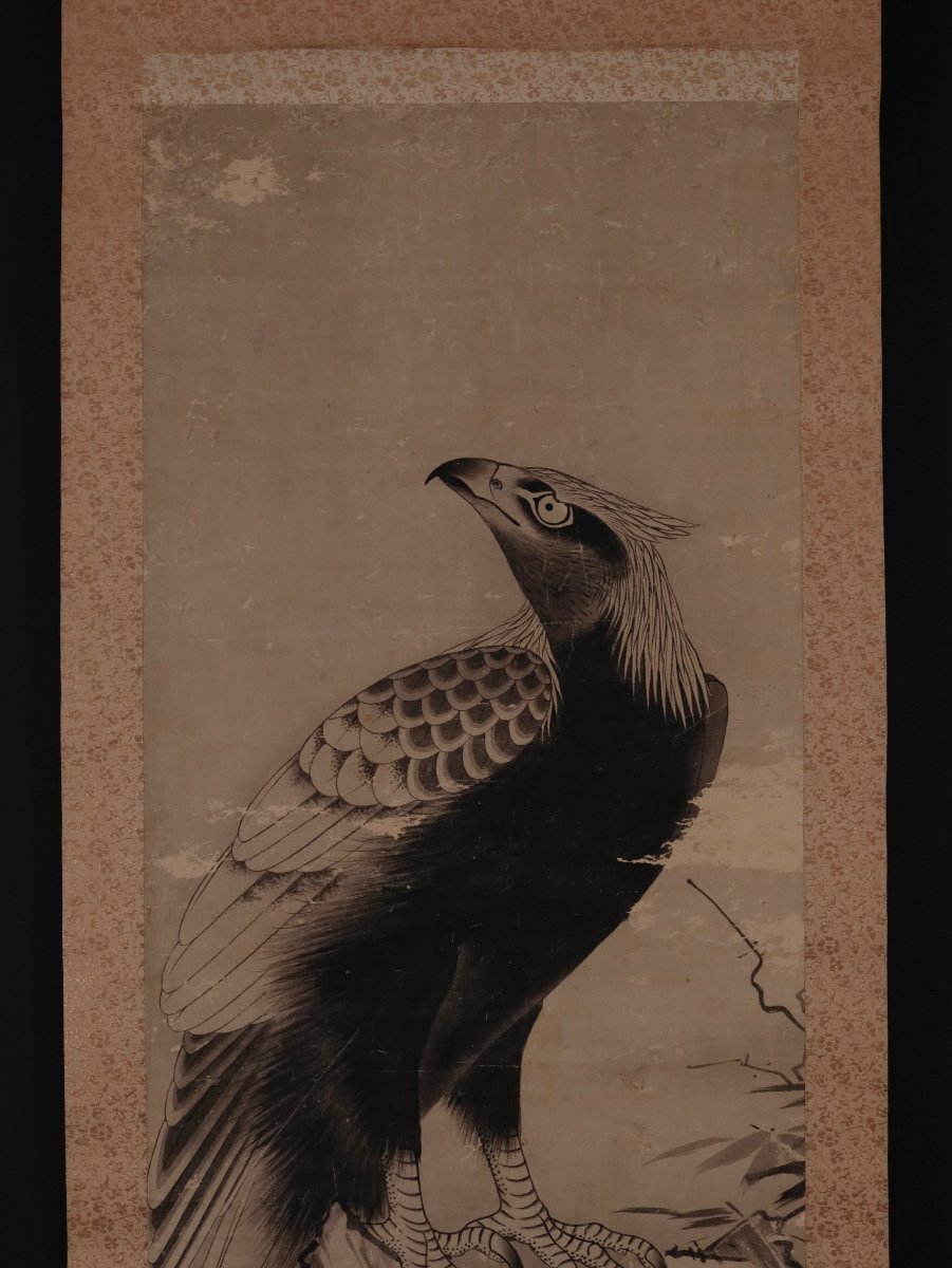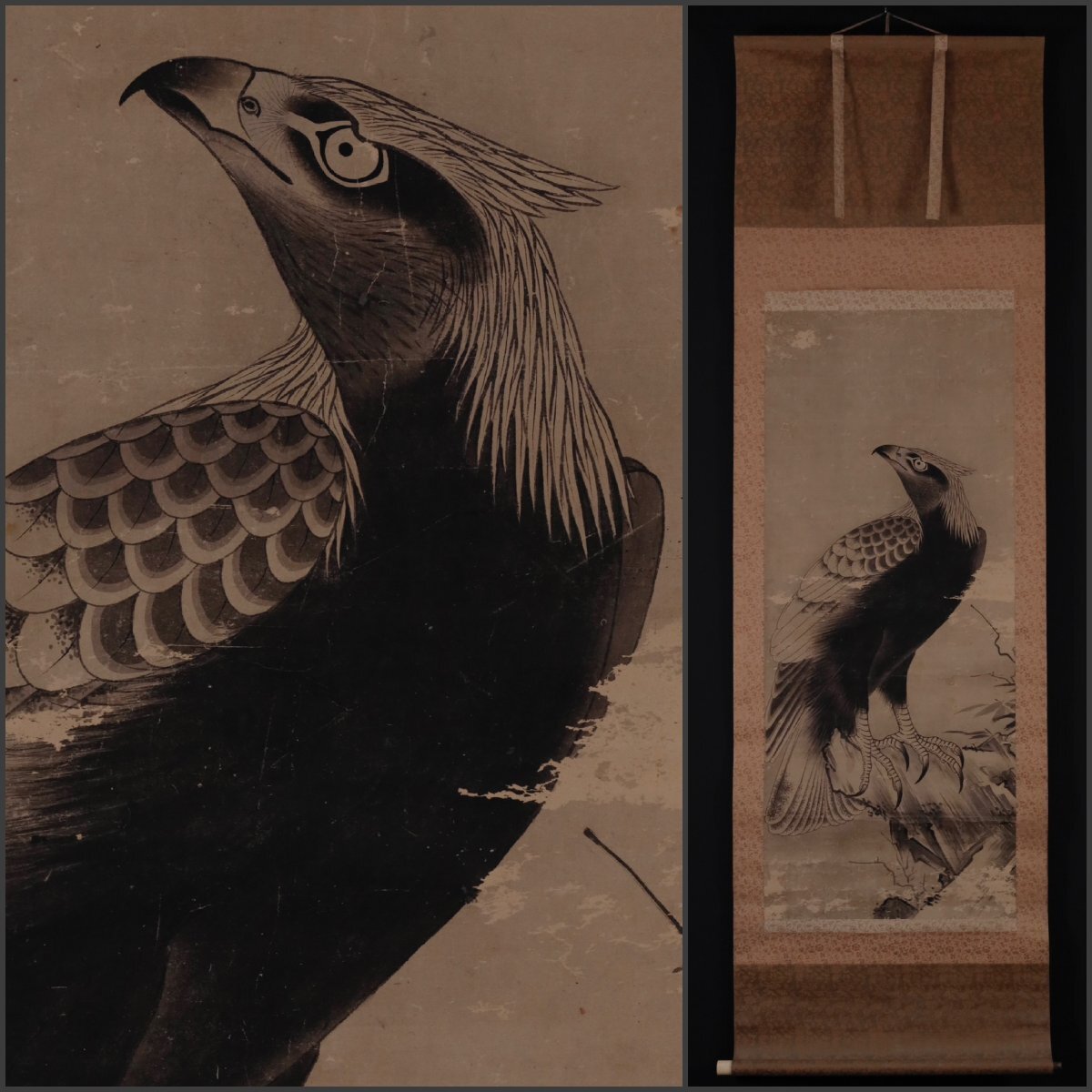 【模写】吉】13067 鷹図 作者不明 古画 中国画 掛軸 掛け軸 骨董品