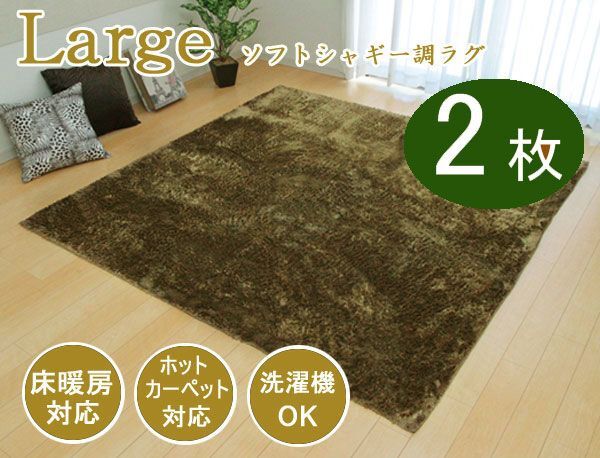 | イケヒコ 洗える シャギー調ラグ「ラルジュ」ベージュ 約130×185 2枚組 | |