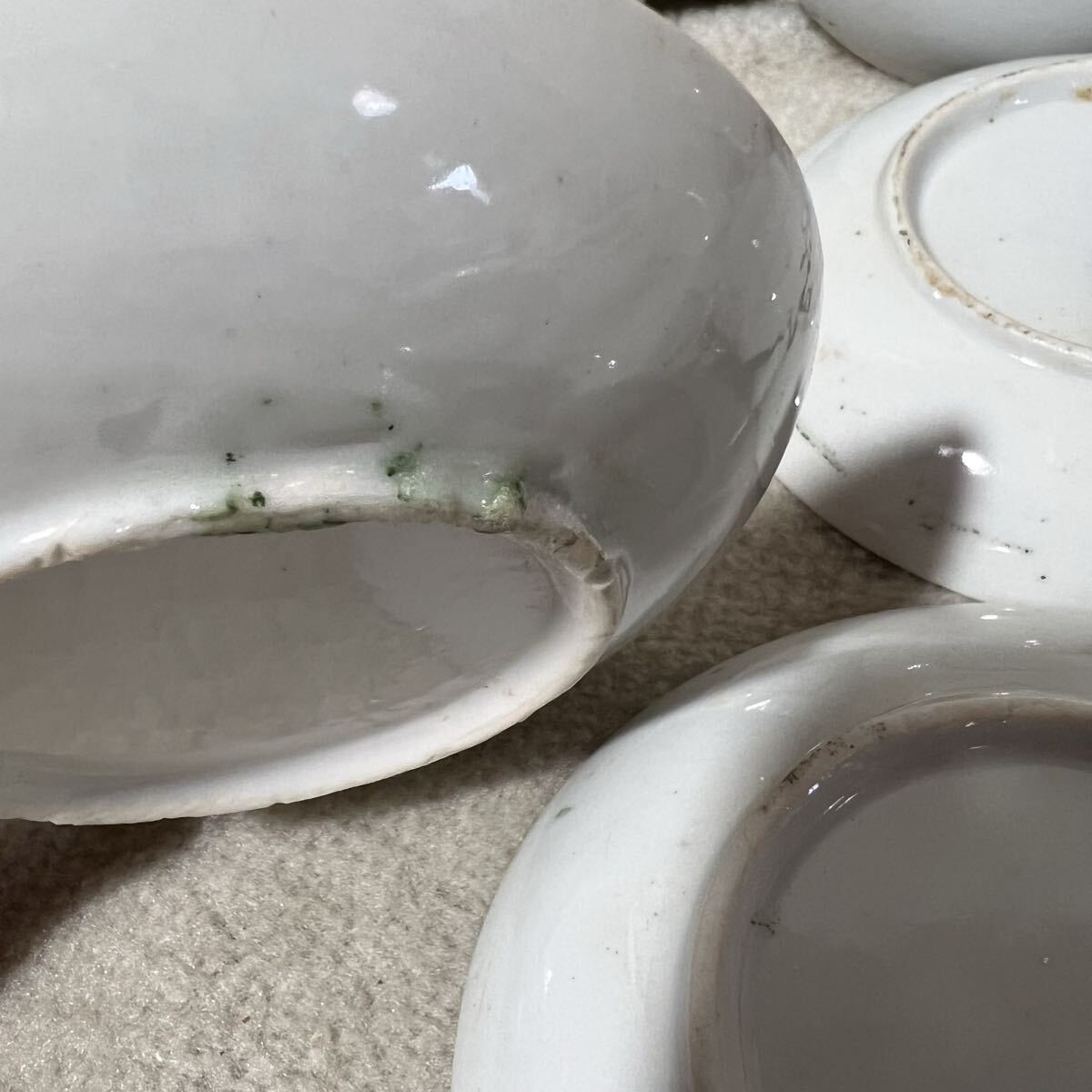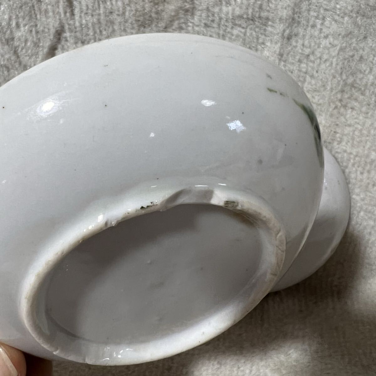 胎土: 白磁。高台内側や裏面には、製造時の小さな黒点(鉄点)や、釉薬が流れ切れずにたまった箇所など、古陶磁器特有の個性が見られます。