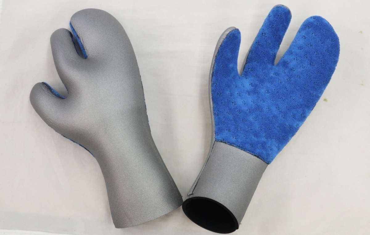 ![]() | 寒冷地向け3mm厚3本指ミトングローブ。 手首裏面に配した吸水率の低いメッシュリペルスキンがフィット感を高め水の浸入を防ぐ。 |