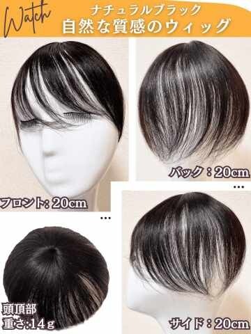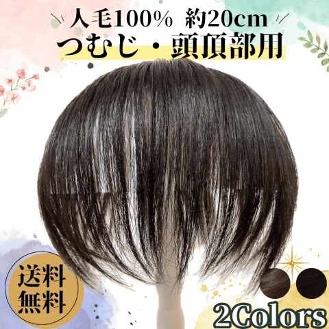 【つむじカバーロング+】 高級人毛100% 部分ウィッグ 白髪 薄毛 抗がん剤治療 ウィッグ ナチュラルブラック つむじ 頭頂部 部分かつら 黒髪