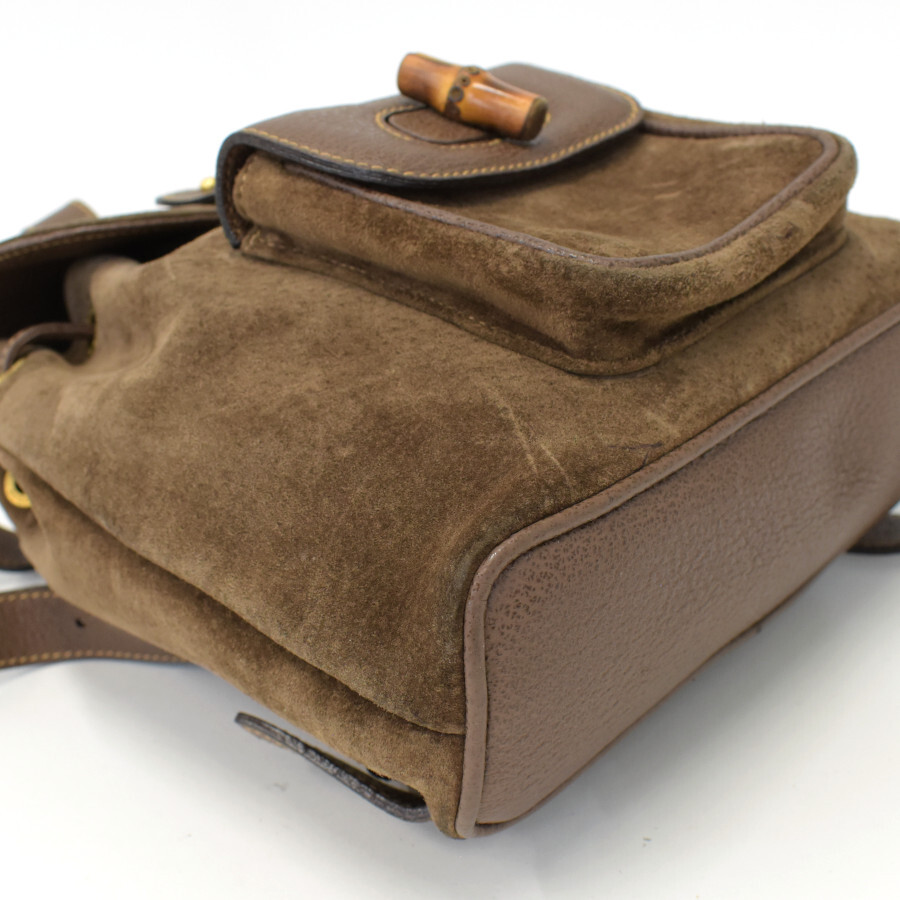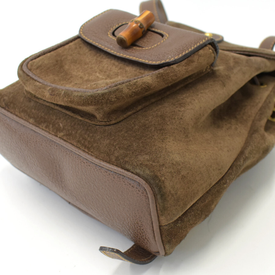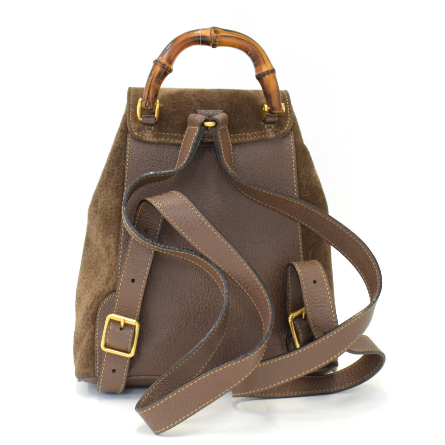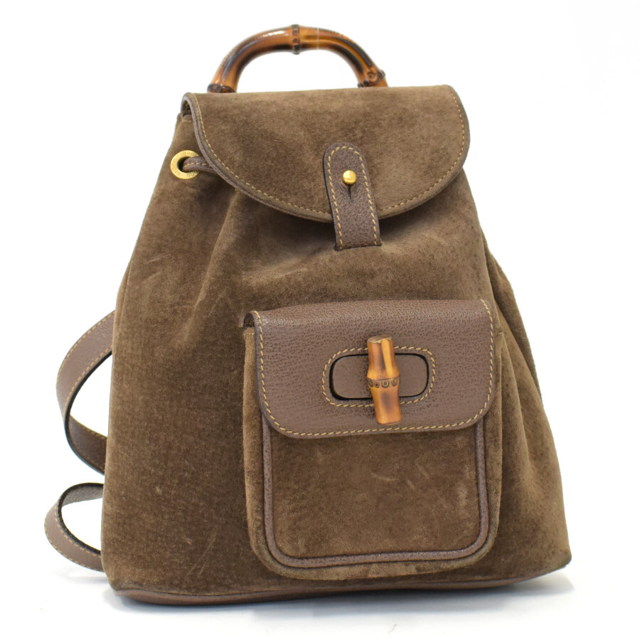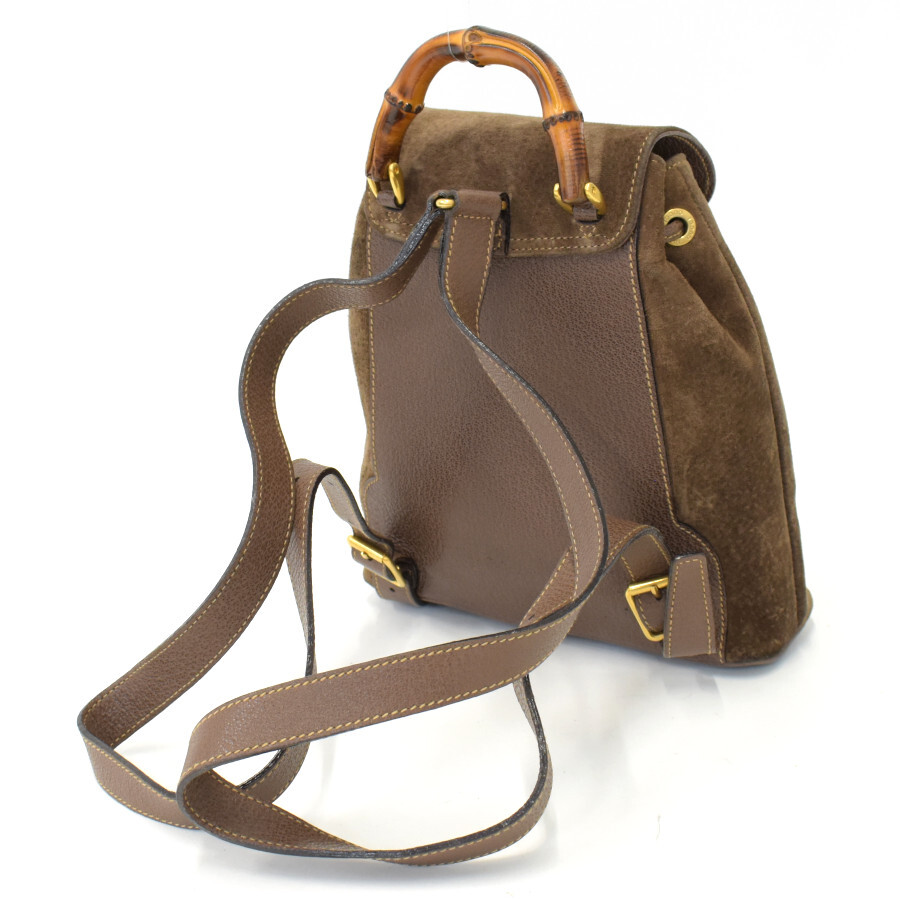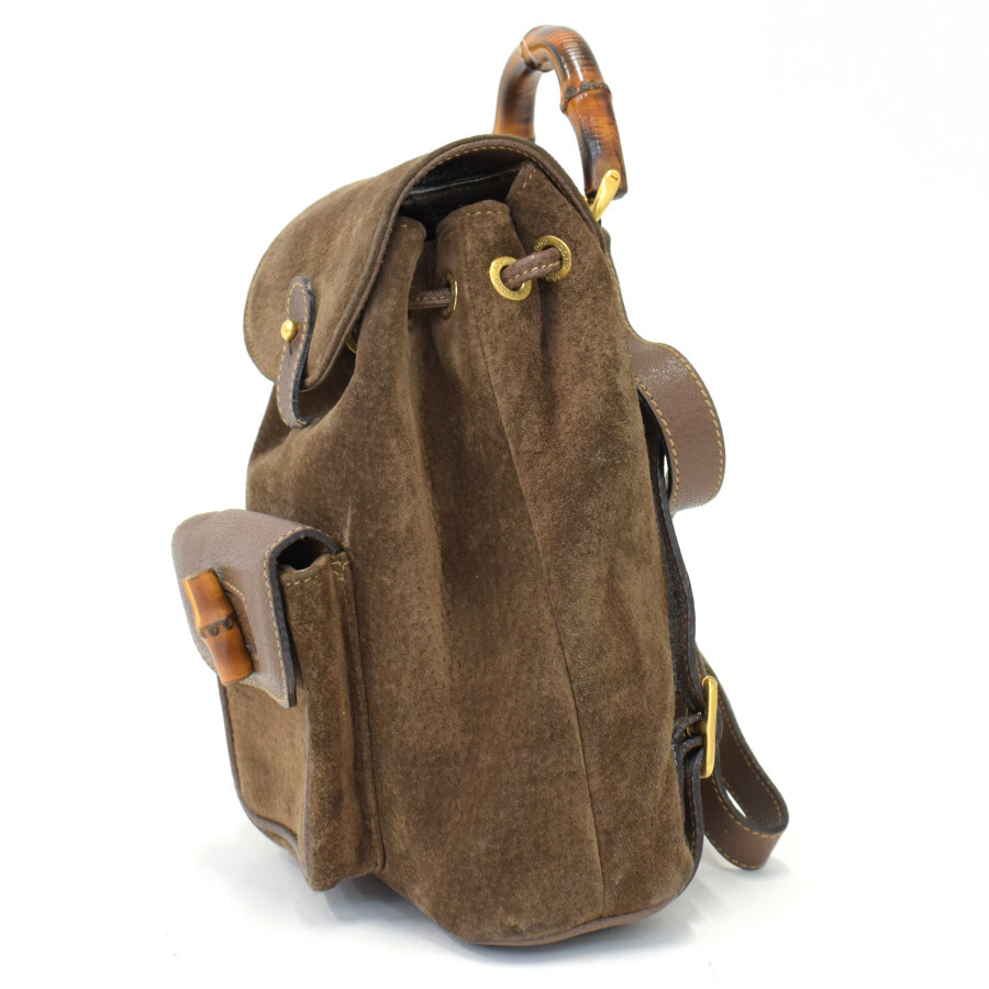 1円◆美品/GUCCI/グッチ/リュック/バックパック/003・2058・0030/バンブー/スエード/レザー/ブラウン◆E.Csg.tI-21