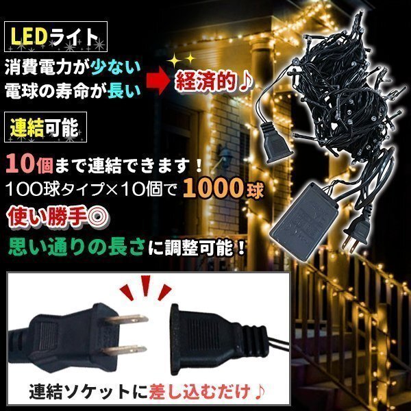 AC式 イルミネーション 連結可 LED イルミネーションライト ツリー ライト 100球 100灯 10m