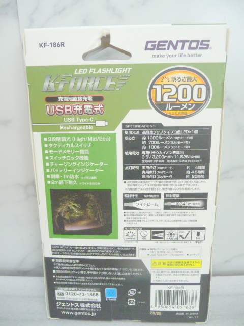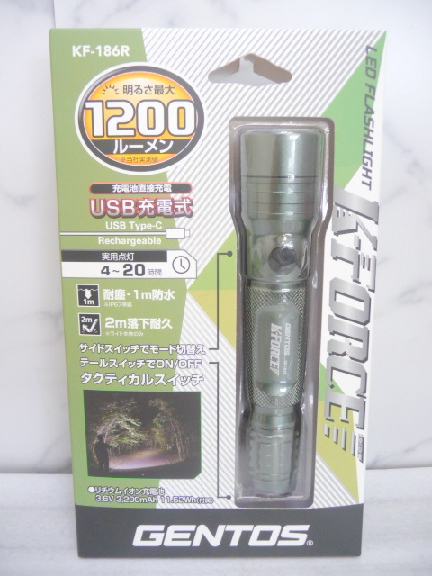 ☆新品/未開封 ジェントス Kフォース 1200ルーメン USB充電式 LEDフラッシュライト KF-186R 懐中電灯 耐塵/防水/耐久 (A11027)