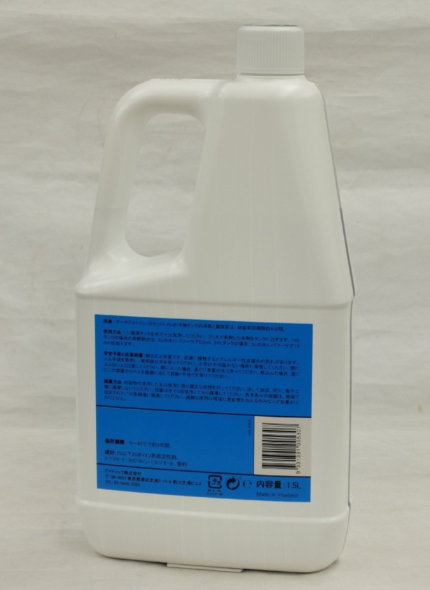![]() | ポータブルトイレ・カセットトイレの汚物消臭と腐敗防止。 パワーケア(原液)は希釈(薄めて)して使用する。(効能有効期限訳4日間) | ||