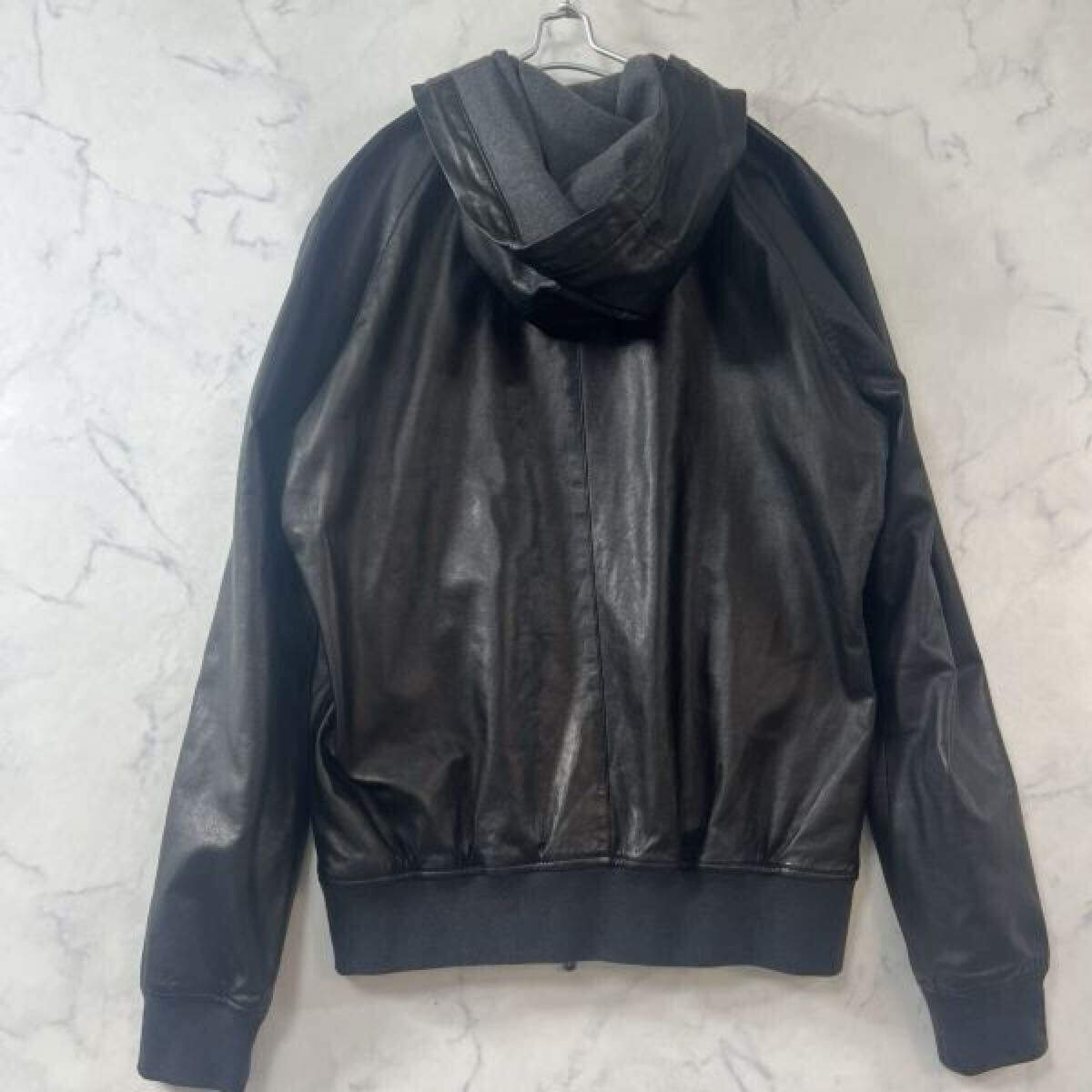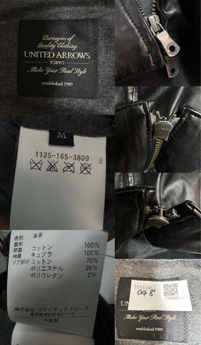 美品 ユナイテッドアローズ M 黒タグ 本革 レザージャケット パーカー フード コート 羊革 ラムレザー 黒 ブラック メンズ B1667