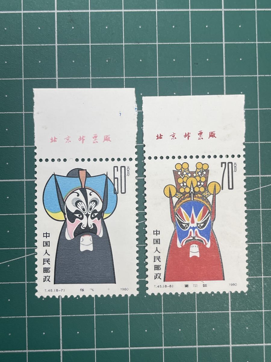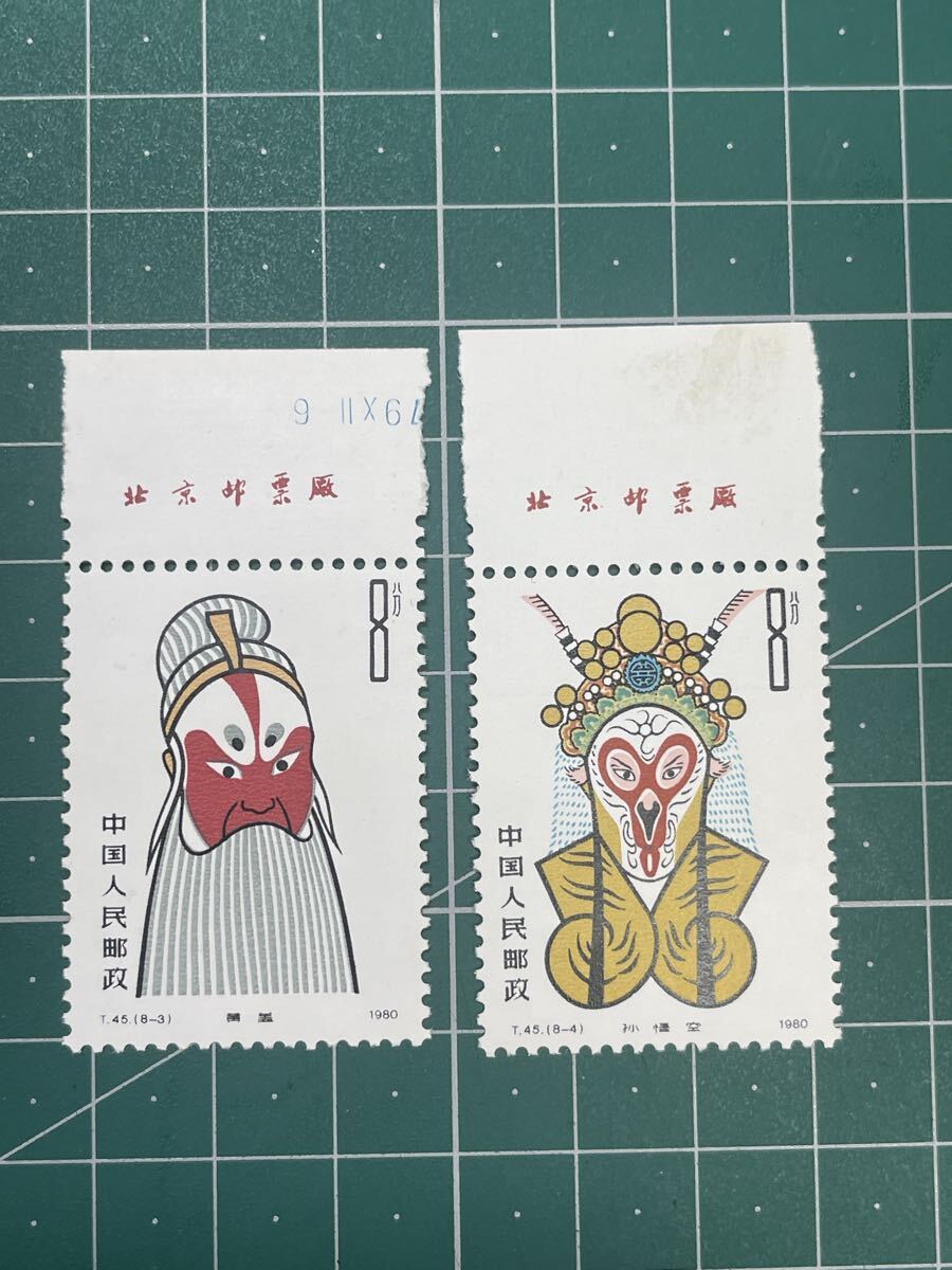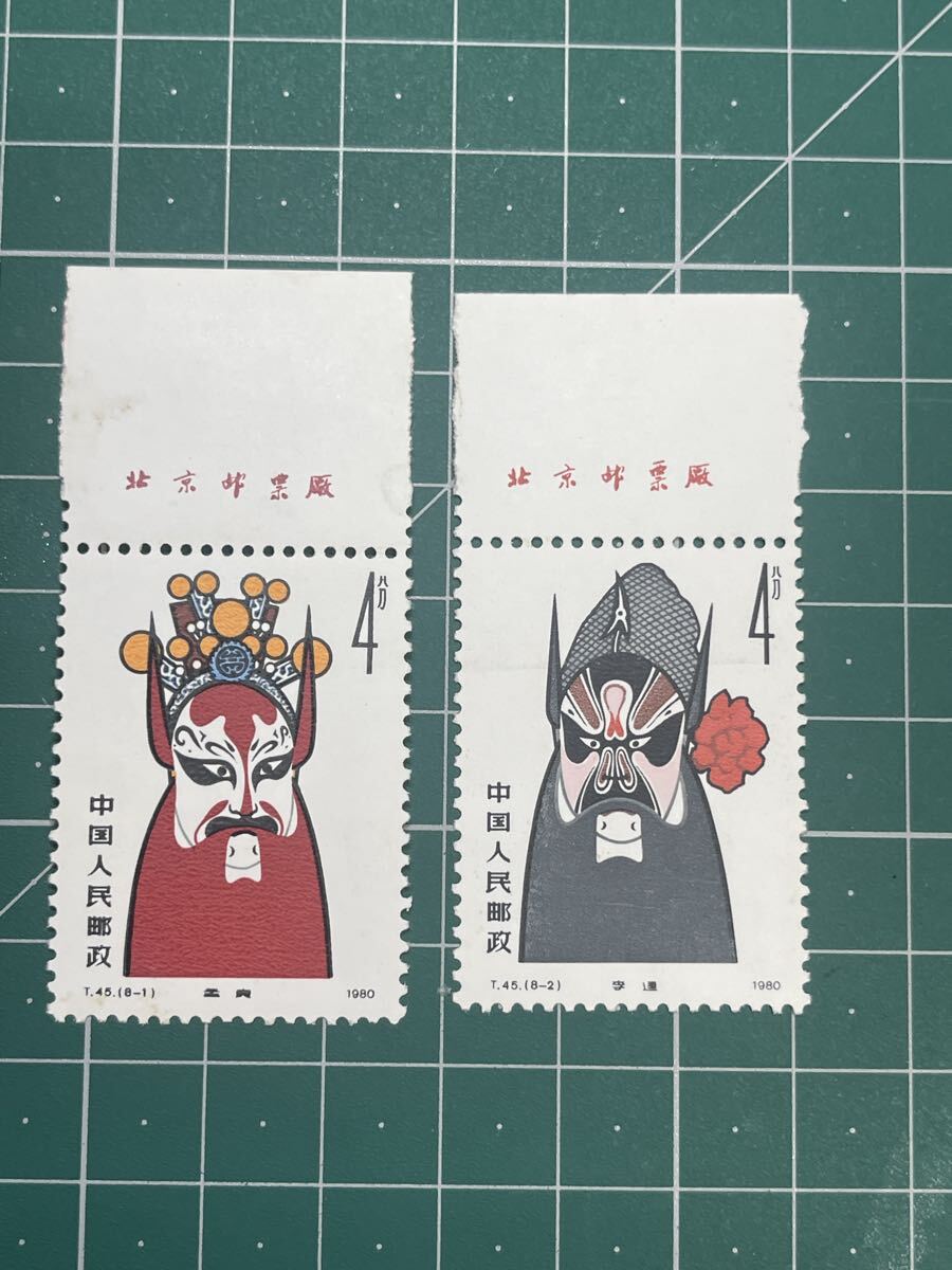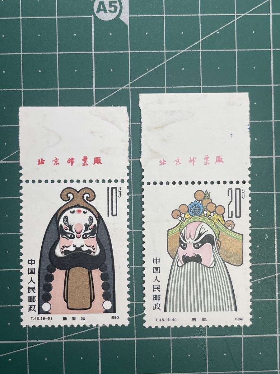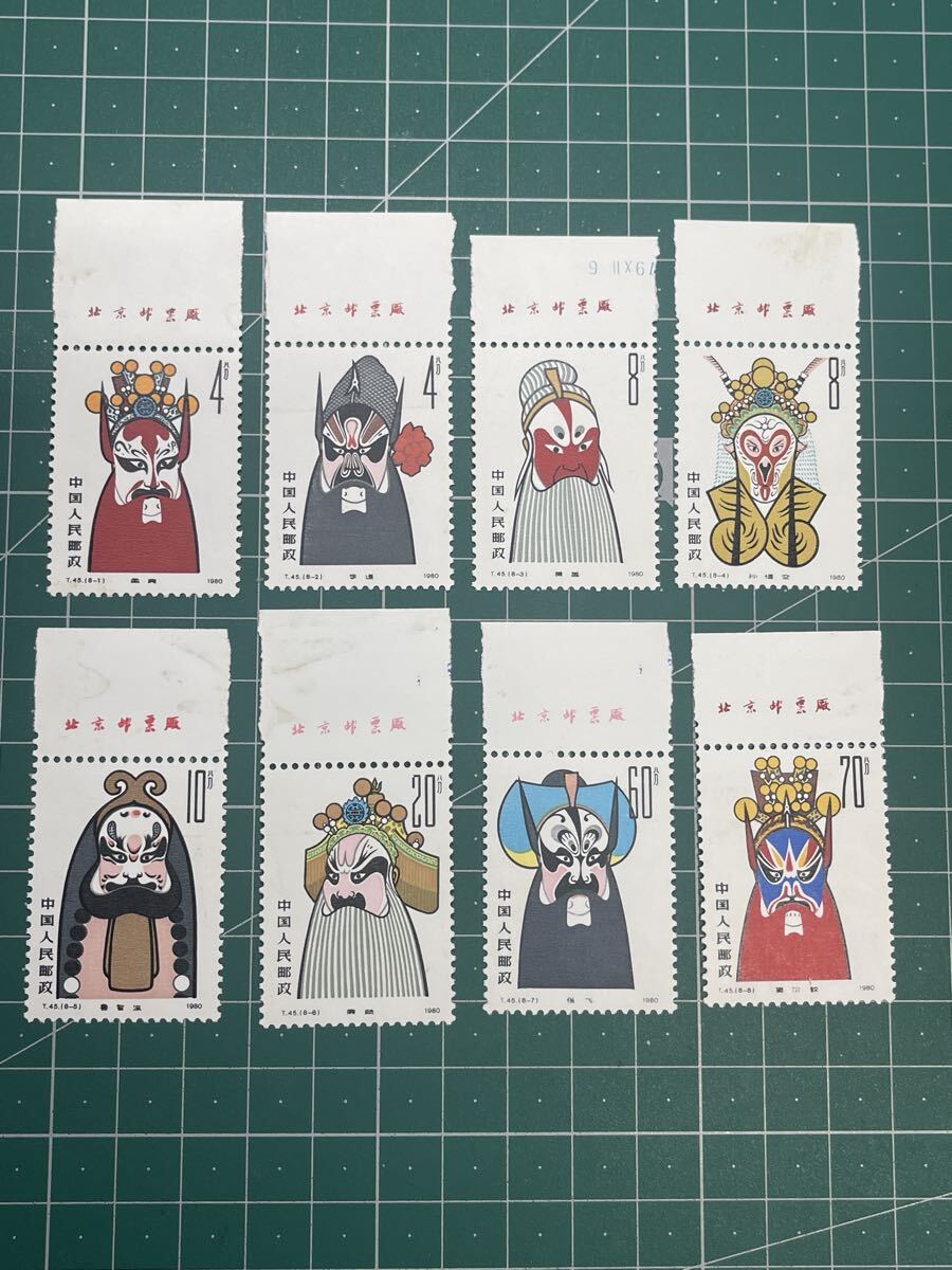 【未使用】中国切手 T45 京劇のくまどり 銘板付き 8種完1セット消印なし ヒンジ痕なしコレクター放出品!