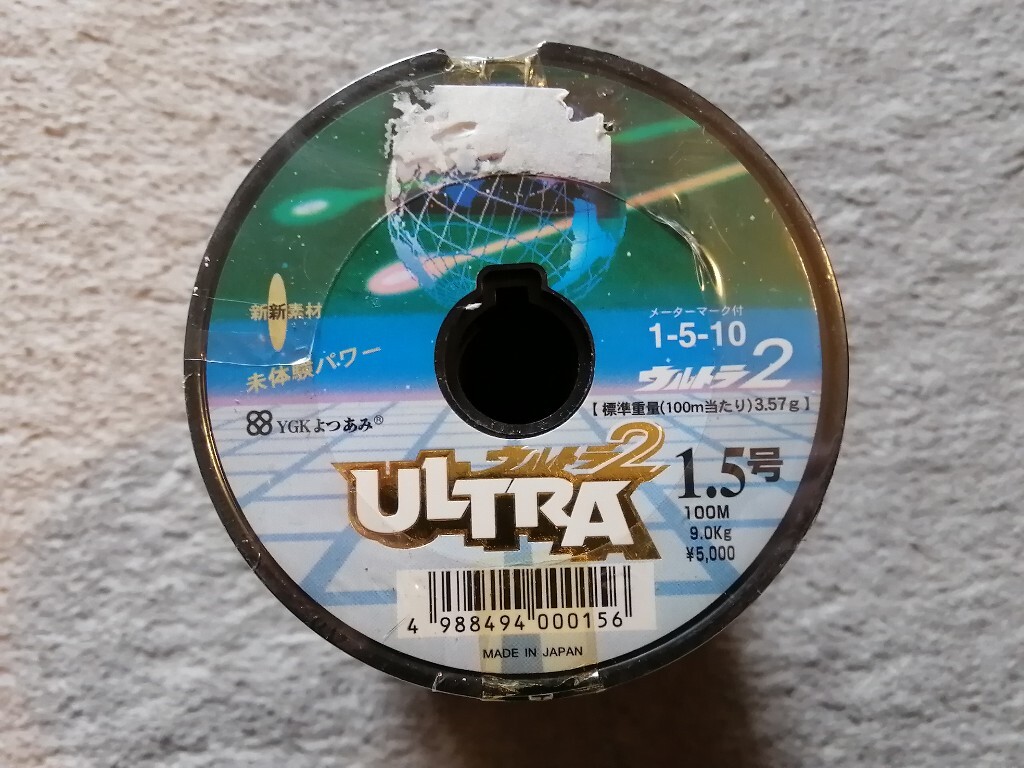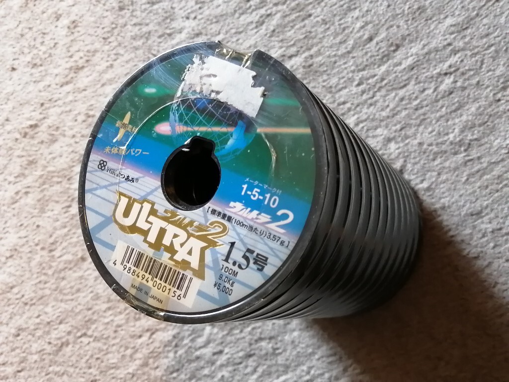 よつあみの船釣り用PEライン、ウルトラ2 1.5号 1200m(100m×12連結)の未使用品です。