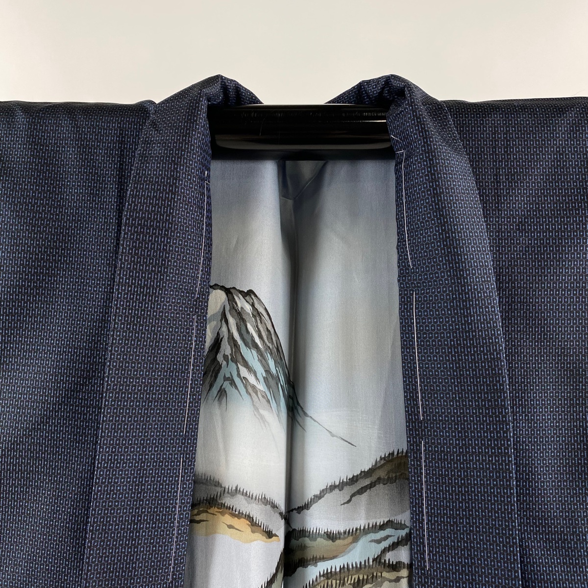 | 男着物 美品 秀品 羽織 紬地 亀甲絣 紺色 身丈94.5 裄丈71.5 M 正絹 【中古】 |