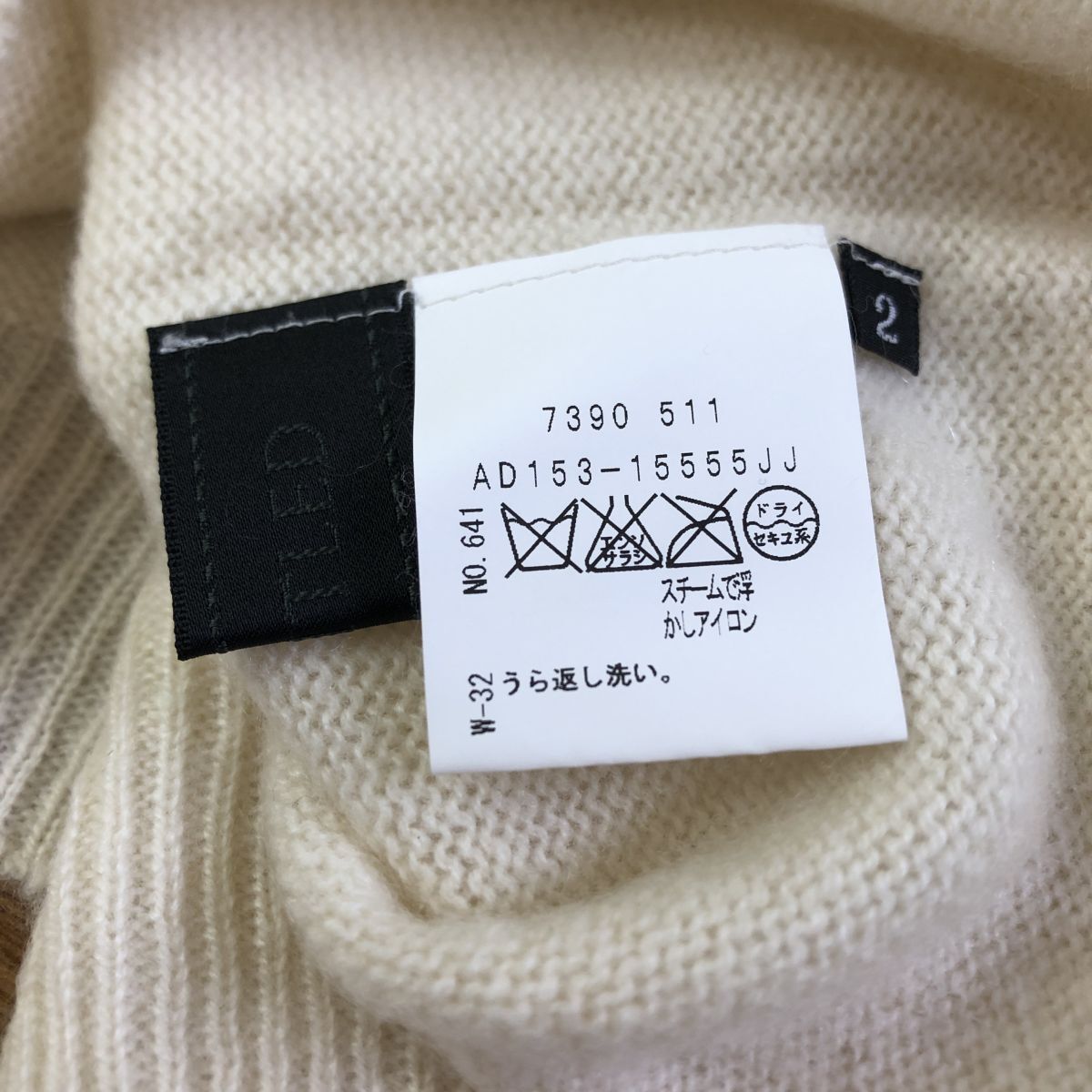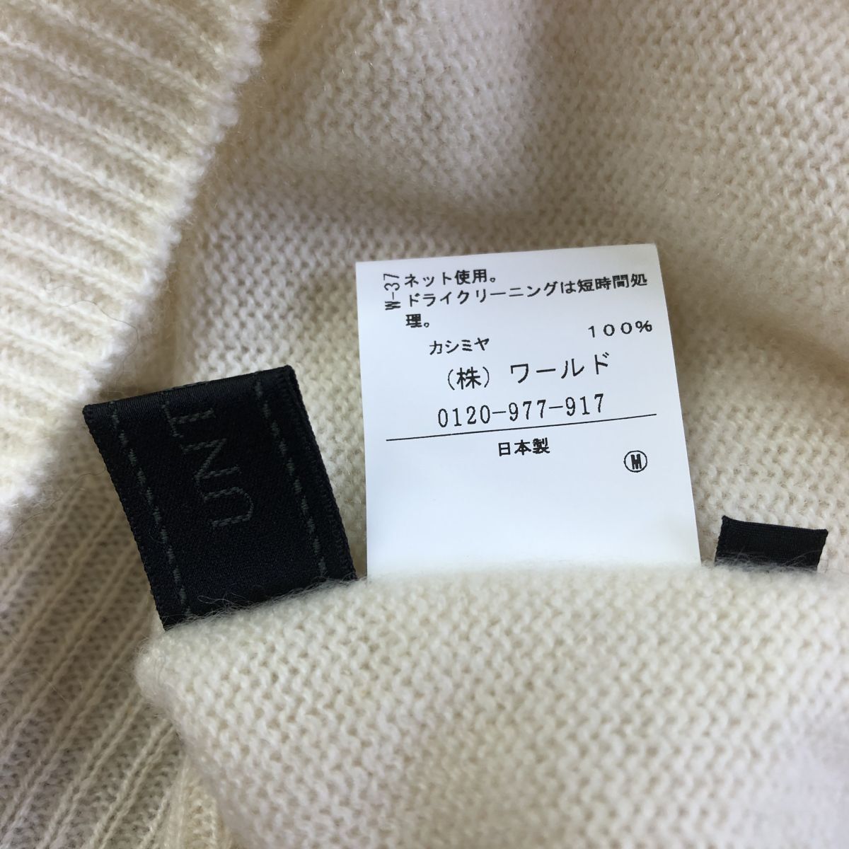 2O3028-K◆良品 日本製 UNTITLED アンタイトル タートルネック長袖ニットトップス◆size2 オフ白 無地 薄手 カシミヤ100% 肌触り良く暖か
