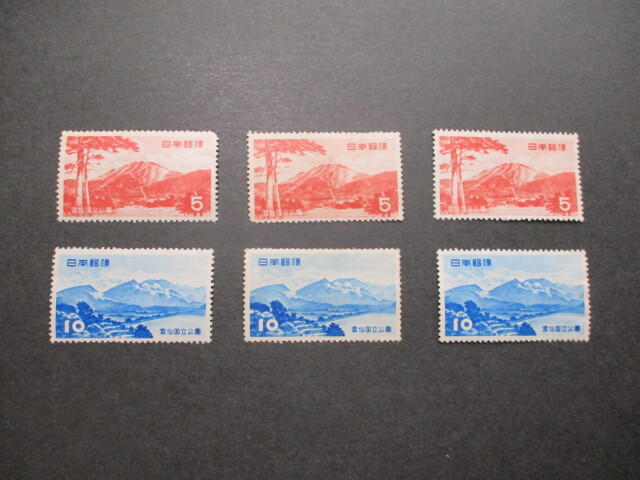 国立公園  1次・雲仙・(2種)   単片各3枚   糊無し