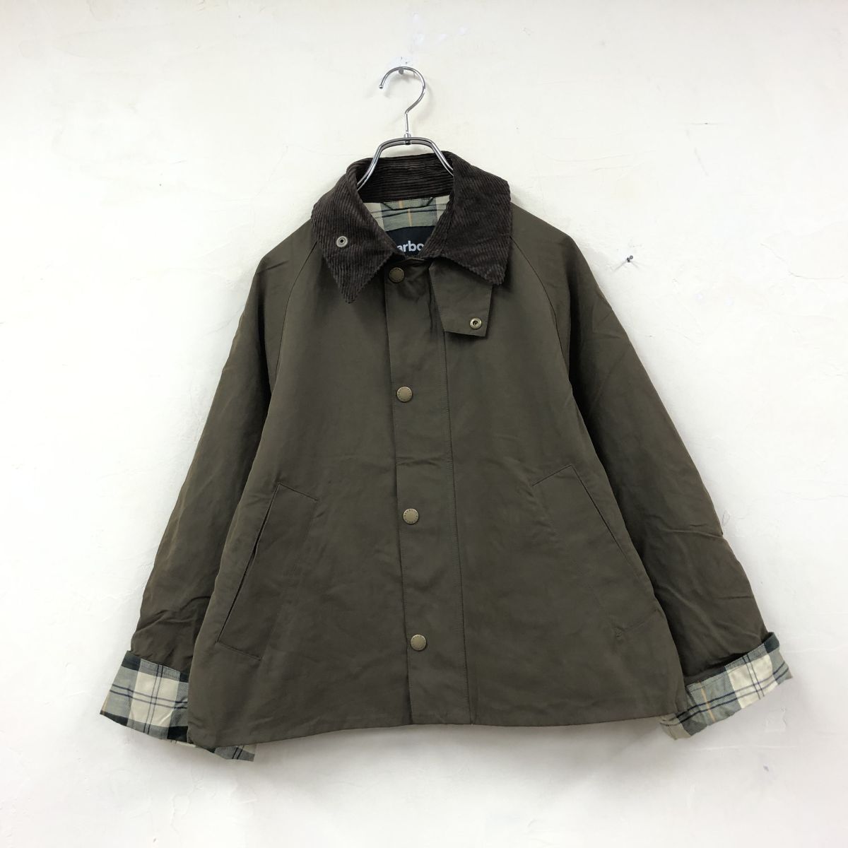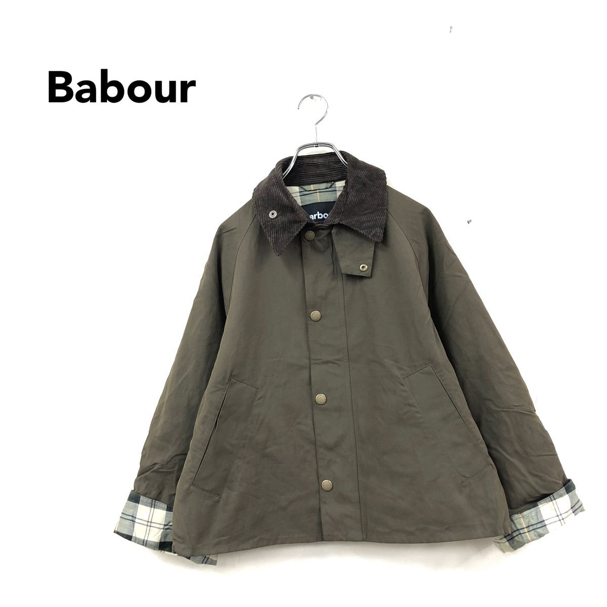 2O3354-D◆良品◆ Barbour バブアー ショートジャケット 短丈 フルジップ 襟コーデュロイ ◆ size36 カーキ ポリエステル コットン