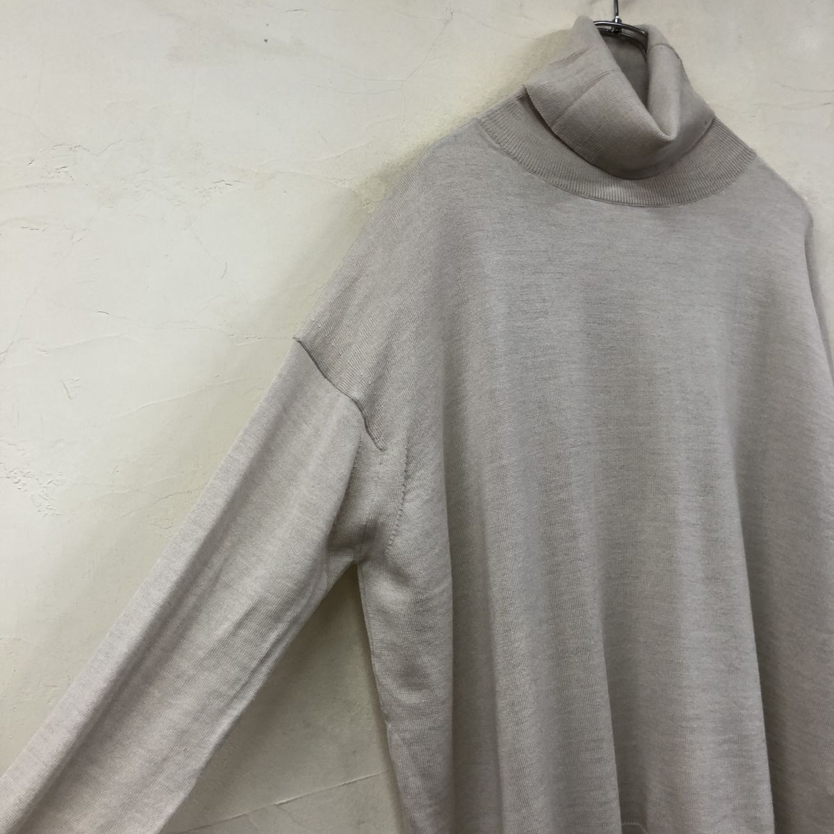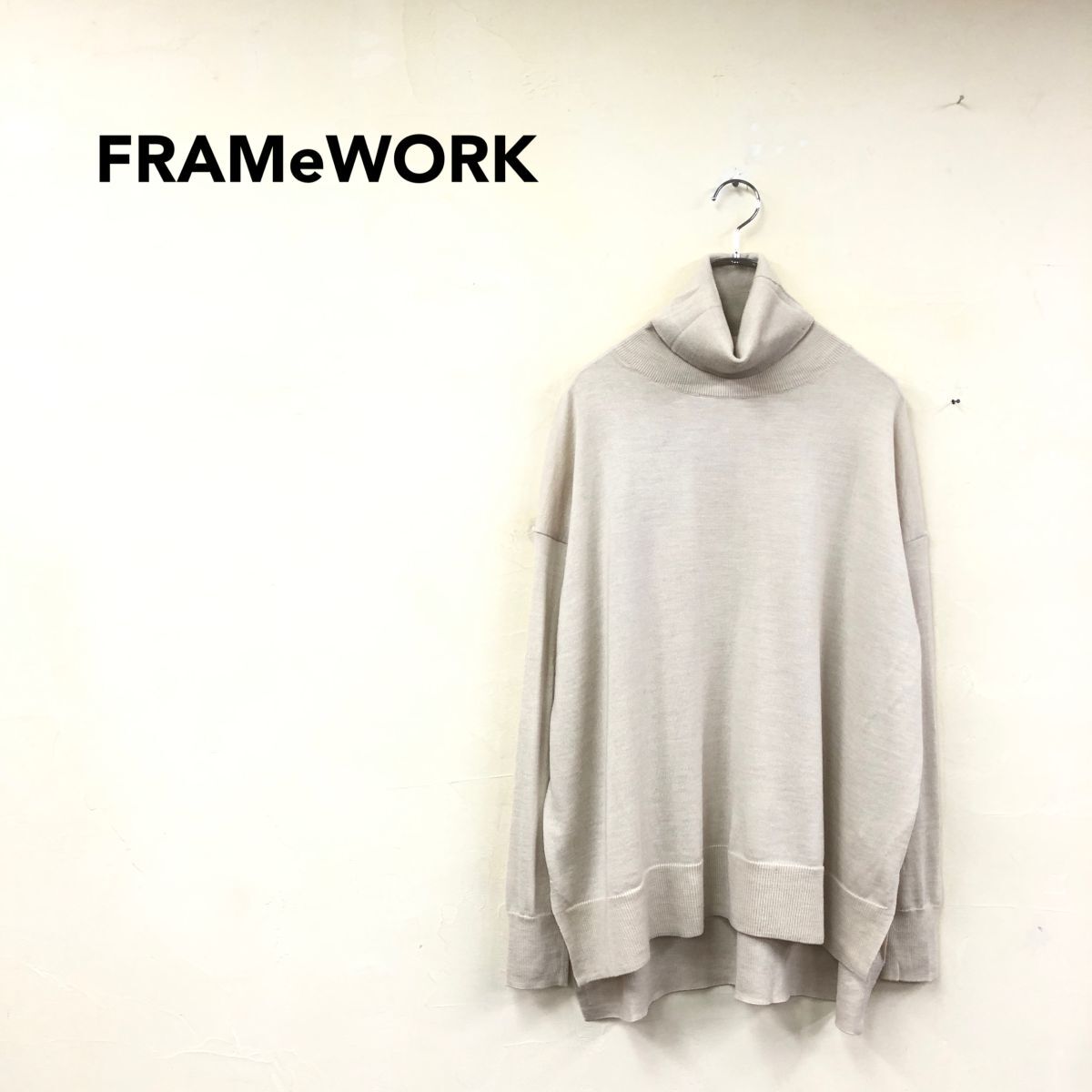 2O3390-K◆FRAMeWORK フレームワーク タートルネックロングニットトップス◆ライトベージュ 薄手 ウール100% 身幅ゆったりレディース