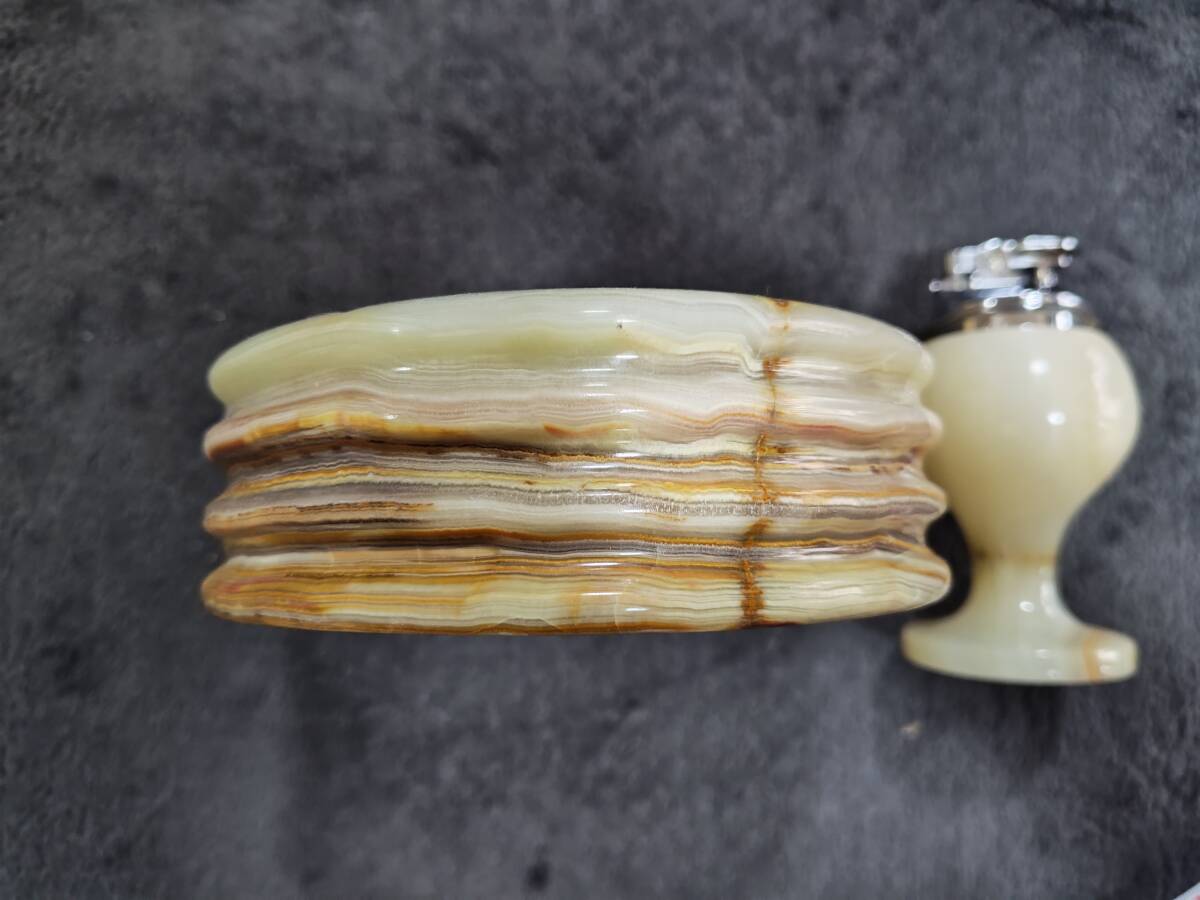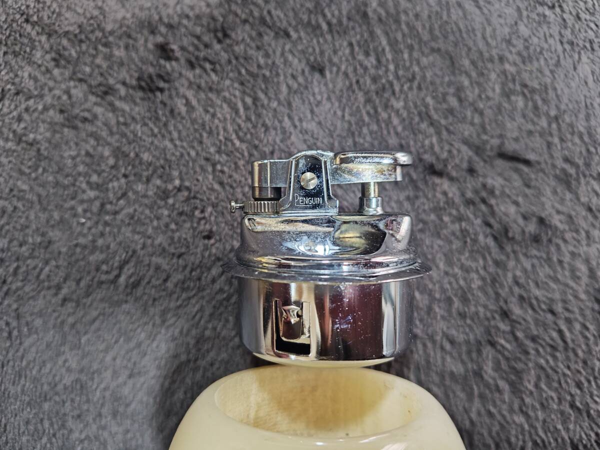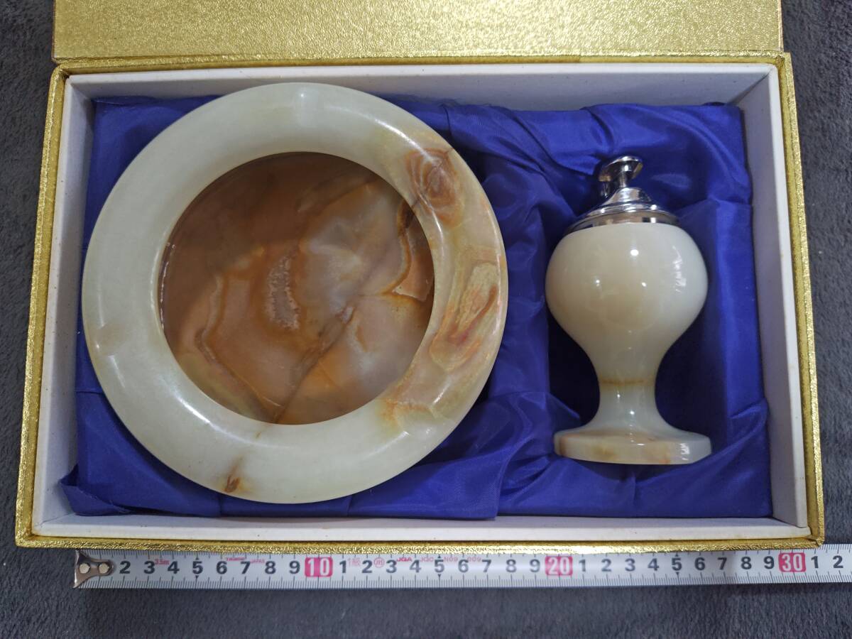 【メノウ 灰皿 ライター セット】 割れや欠けはありません。 ライターのほうに「PENGUIN」「JAPAN」の表記があります。 ライターはガス式です。(稼働確認は取っておりまっせん) 外箱にマジックで記載があります。 長期保管品のため、汚れがありますし、古いものですので、ご理解ください。 |