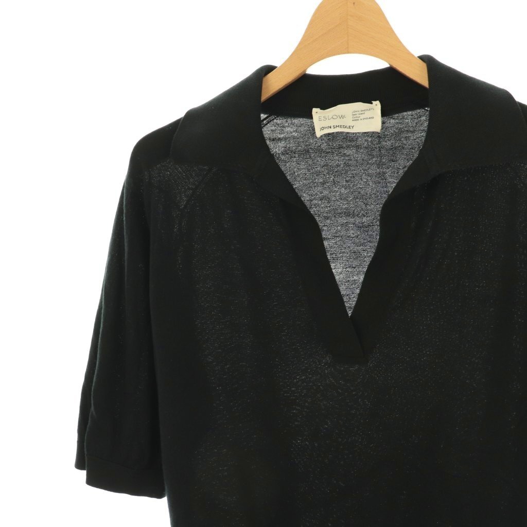 ジョンスメドレー JOHN SMEDLEY ESLOW スキッパーネックニットポロシャツ カットソー M ブラック /DO ■OS レディース