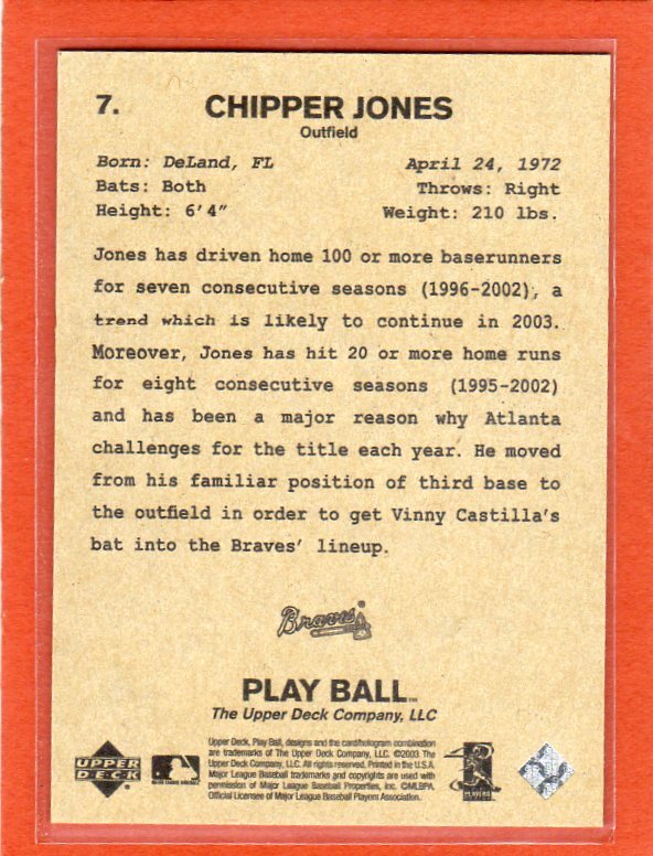 | ★☆チッパー・ジョーンズ カード Vol.24 2003UD PLAY BALL☆★ | |