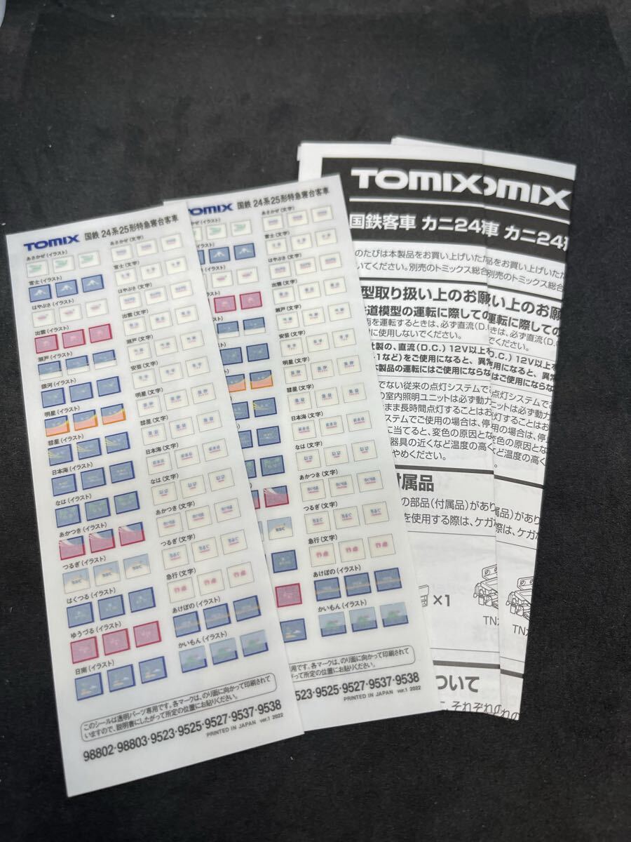 送料無料 新品 ばらし TOMIX トミックス 9538 国鉄客車 カニ24-100形(銀帯)(T) より 説明書 あさかぜ 富士 はやぶさ 日本海 トレインマークシール×2