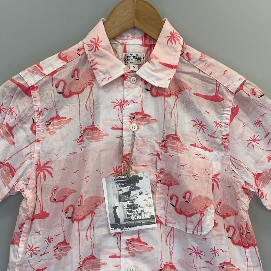 新品同様◆シャツ エンジニアードガーメンツ アロハシャツ 半袖 総柄 ピンク レディースサイズ0 ENGINEERED GARMENTS 【AFB33】