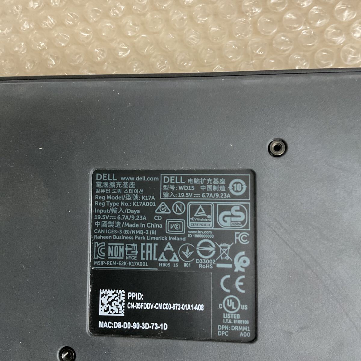 ◎(D2385) Dell Business Dock WD15(130 Wアダプタ付き/Dell ドッキングステーション USB Type-C対応 /K17A/中古 (庚2)