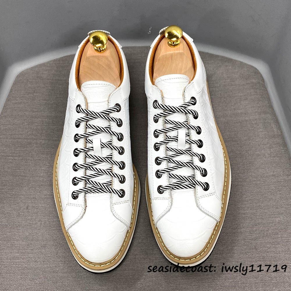 定価9万超◆最高級 スニーカー 本革 レザーシューズ メンズ ビジネスシューズ 牛革 革靴 職人手作り紳士靴 軽量ローファー ホワイト 24.5cm