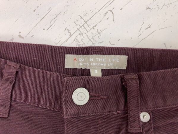 UNITED ARROWS ユナイテッドアローズ A DAY IN THE LIFE スリム ツイル 5PK パンツ ボトムス メンズ 日本製 S 赤紫 です。