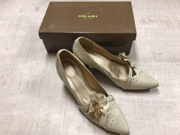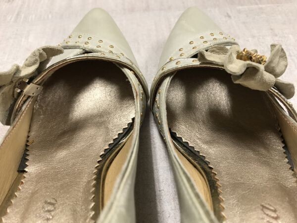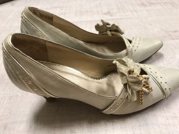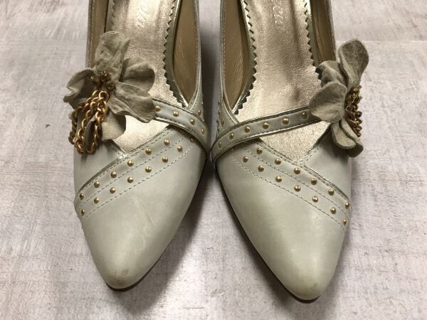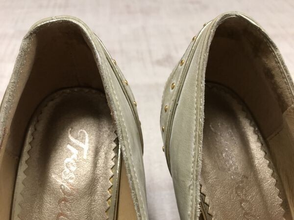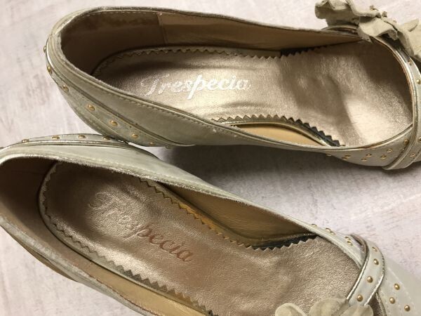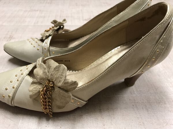 Trespecia トレスペシア ゴールド スタッズ フラワー装飾 エレガント レトロ モード ハイヒール 靴 レディース 箱付き 23.5cm 生成り です。