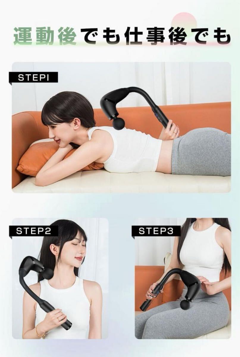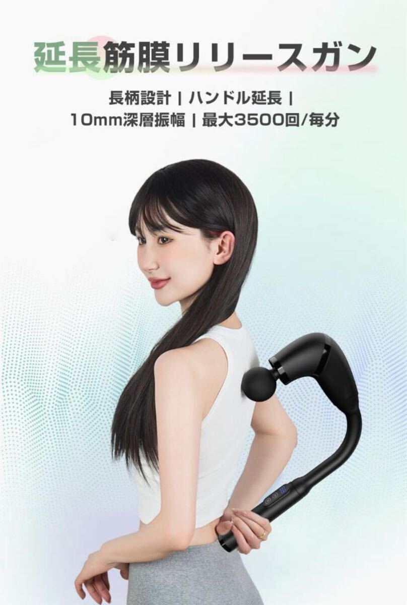 筋膜リリースガン 筋膜ガン 【 背中まで届く + 22段階強力振動 】 3つのモード 10mm振幅 3500回/分 液晶ディスプレイ ハンディガン Type-C急速充電 大容量バッテリー 静音 日本語取扱説明書付き