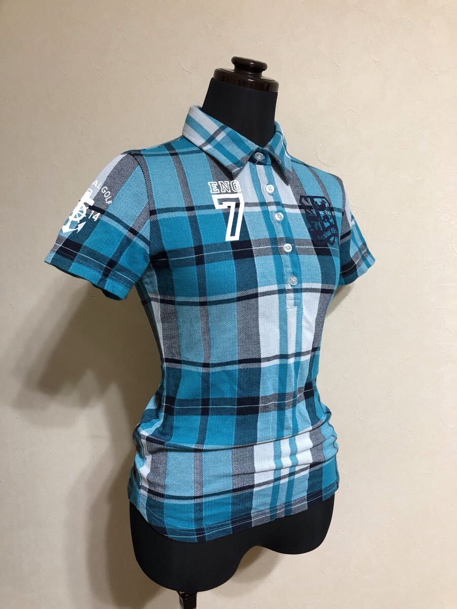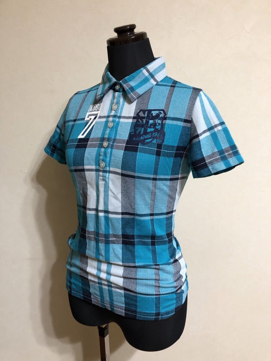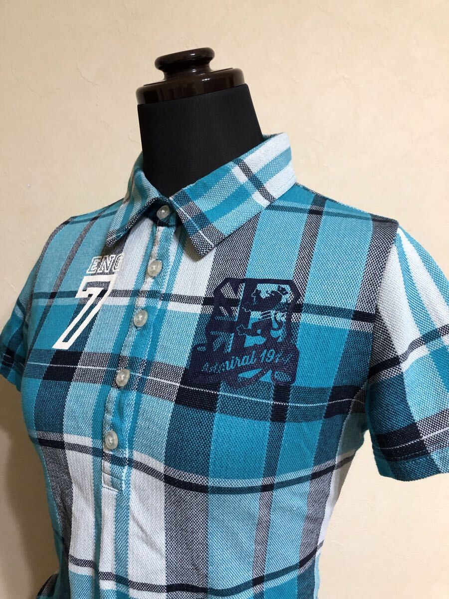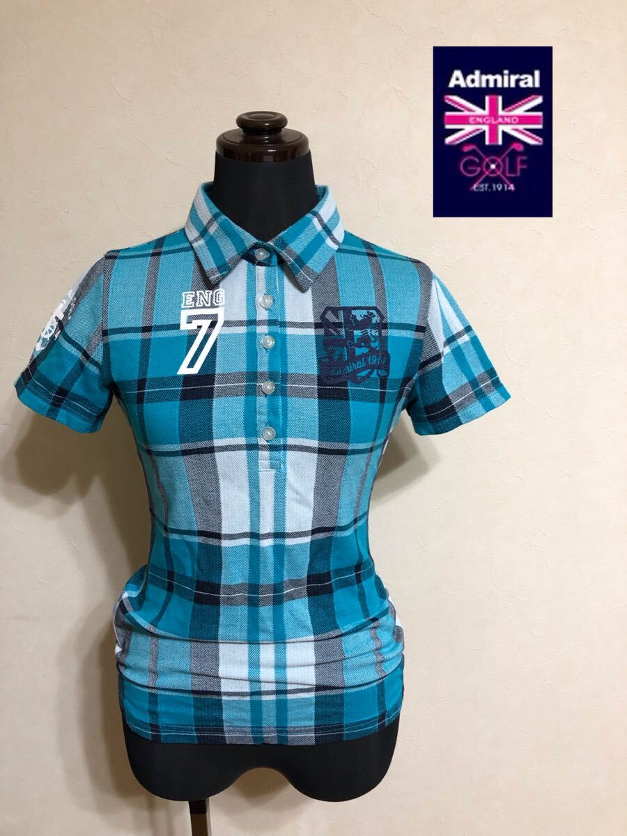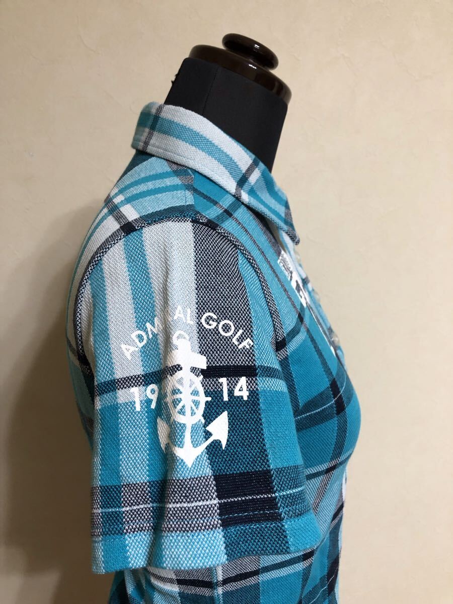 【品名】【良品】 ADMIRAL GOLF アドミラル ゴルフ レディース タータンチェック柄 ドライ ポロシャツ トップス サイズS 半袖 水色 日本製 ADLA523