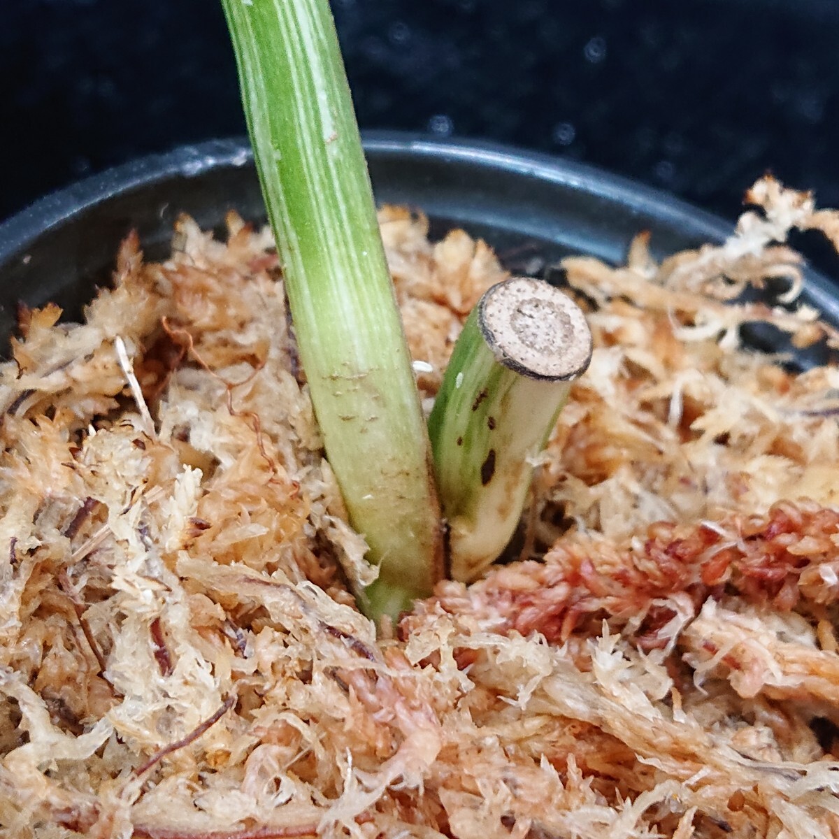 16 最上級斑入り♪ 極上斑入り成長点♪ 発根済み! 極上♪ 斑入り モンステラ ボルシギアナ ホワイトタイガー 極斑入り ハーフムーン 散り斑