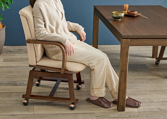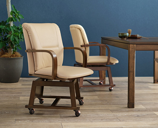 ハイタイプこたつ/ダイニングコタツ 高脚こたつ150センチ幅(長方形)+肘付キャスター付き回転椅子4脚の5点セット ダークブラウン色寒い冬は天板と本体の間にふとんはさんでハイタイプコタツとして、春夏秋は布団を取り外して天板を固定し、ダイニングセットやデスクにと年中お使いいただけます。天板高さは4段階に調節できます。ヒーターは薄型ですからテーブルとして使用時にヒーターは外からは見えません。立ち座りが楽で、膝の痛むシルバーの方にも最適です。省エネ、エコ暖房で電気ストーブより暖かく、電気代もお得です。暖卓サイズ:幅150×奥行85×高さ69/64 継脚式■天板:ウォールナット突板(天然木化粧繊維板) UV硬質ウレタン塗装●600W石英管ヒーター 手元電子コントローラー肘付椅子サイズ:幅55×奥行62×高さ85×座面高さ43.5センチ■構造部材:天然木 張り生地:合成皮革 組立式(座部と背部の取り付け式)☆落札、ご入金確認後 1~2日にて発送いたします 追加納期のかかるものは商品ページに記載いたしております よろしくお願いいたします。