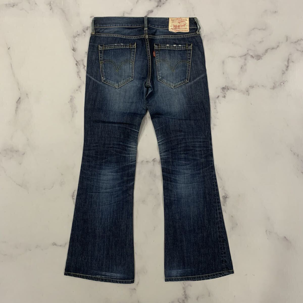J ▼ 08年製 'ダメージ加工' LEVI’S リーバイス インディゴ デニムパンツ ジーンズ ブーツカット フレアパンツ 29 レディース ボトムス