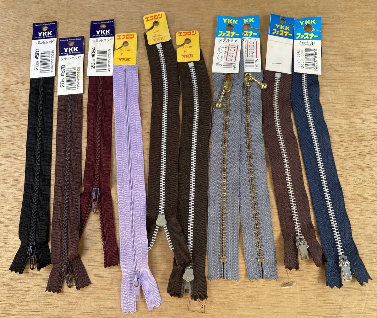 YKK ファスナー 約20cm前後 まとめて130本以上です。サイズは画像参照。画像1が全てです。