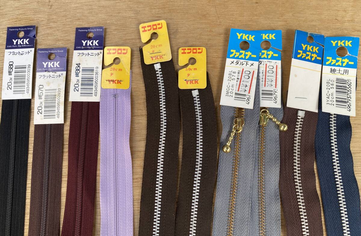 Mヌヌア手芸店01/YKK ファスナー 約20cm前後 まとめて130本以上 エフロン フラット ニット など レトロ 長期保管品 現状品