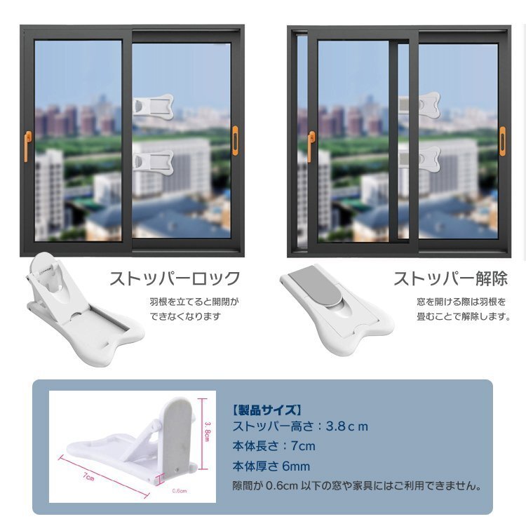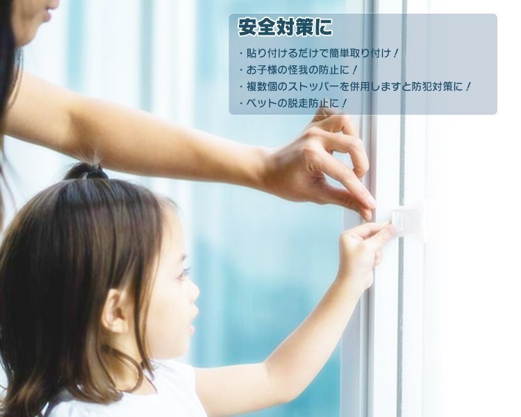 ◆窓ストッパー 4個セット ベビーガード 鍵のないお部屋に 引き戸ロック 内側ロック 施錠 安全ロック 多目的ストッパー ドア開閉け防止 ペットの脱走防止 お子様のいたずら 指はさみ ケガや事故防止に BLOMAD300