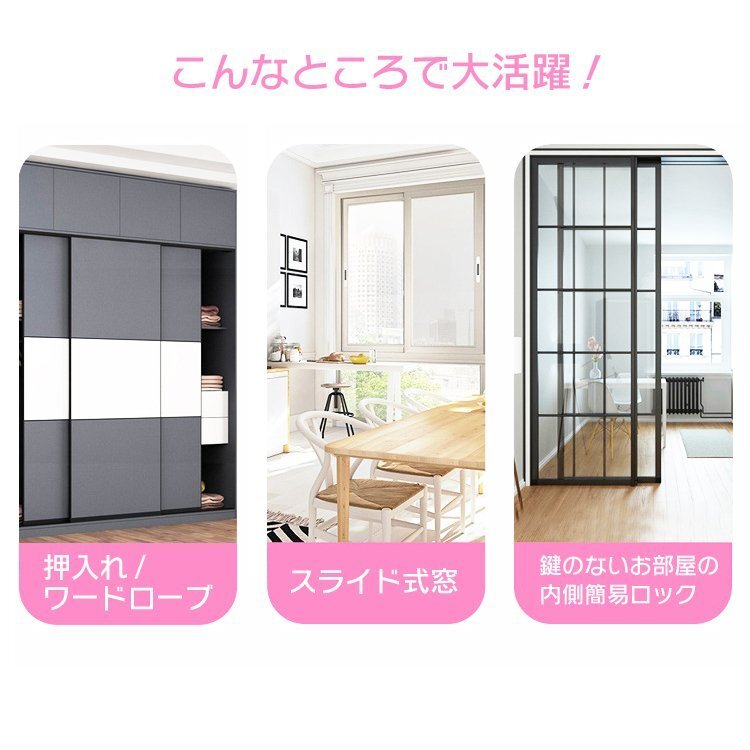 鍵のないお部屋に、引き戸のお部屋に壁などに穴を開けない簡易内側ロックとしてもご利用いただけます。