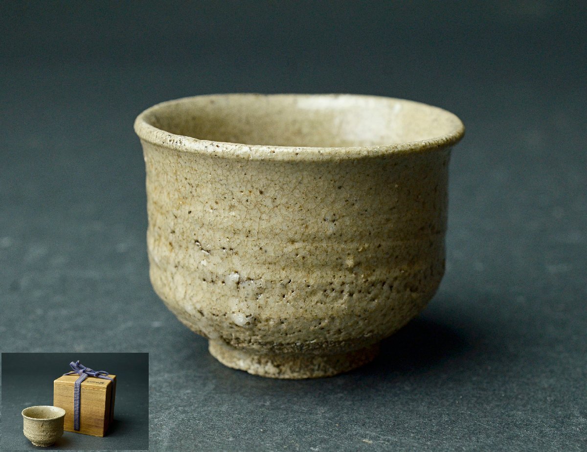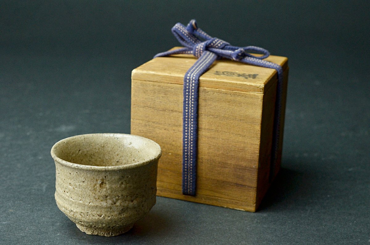【YB】江戸時代 無地唐津杯・盃・桐箱付属 ★日本酒器古玩骨董25Y1003