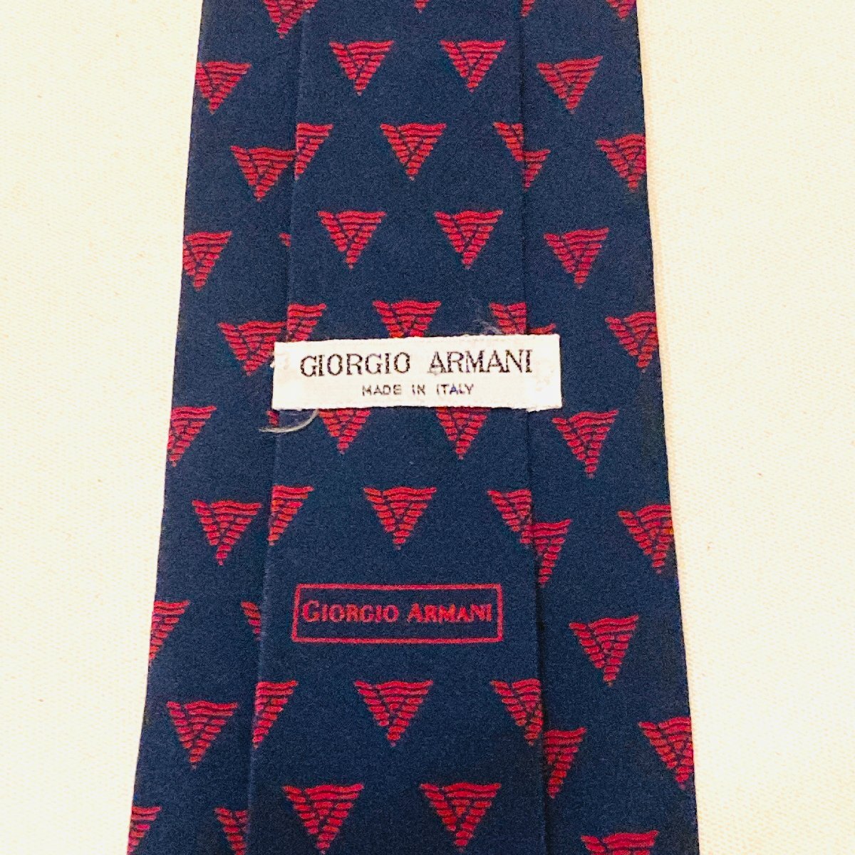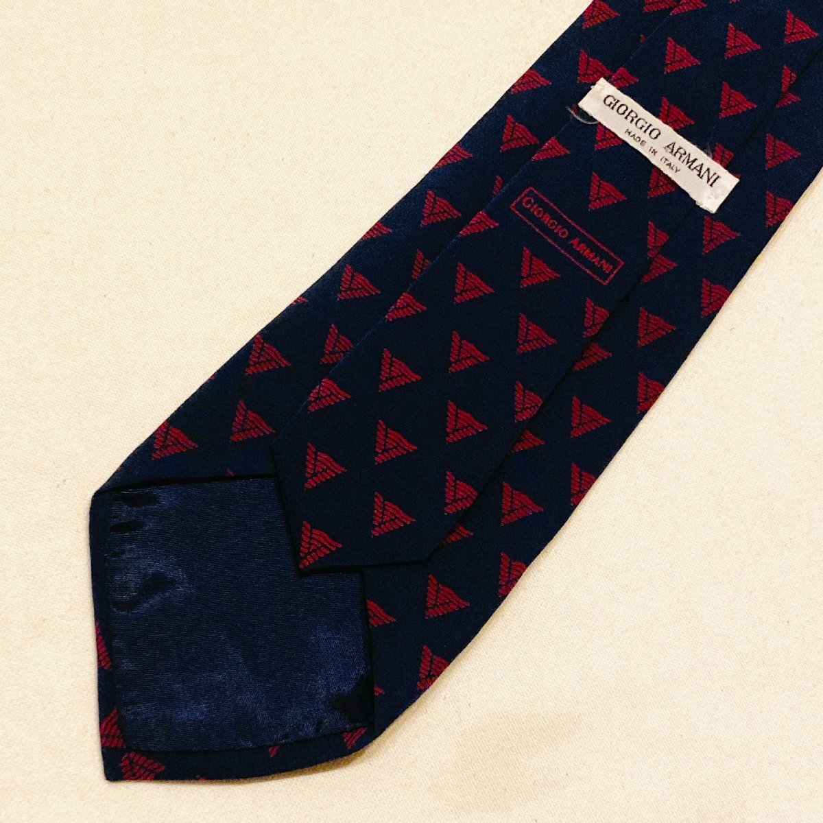 GIORGIO ARMANI ジョルジオアルマーニ イタリア製 絹 シルク SILK 100% 高級 ネクタイ ネイビー系 総柄 幾何学模様