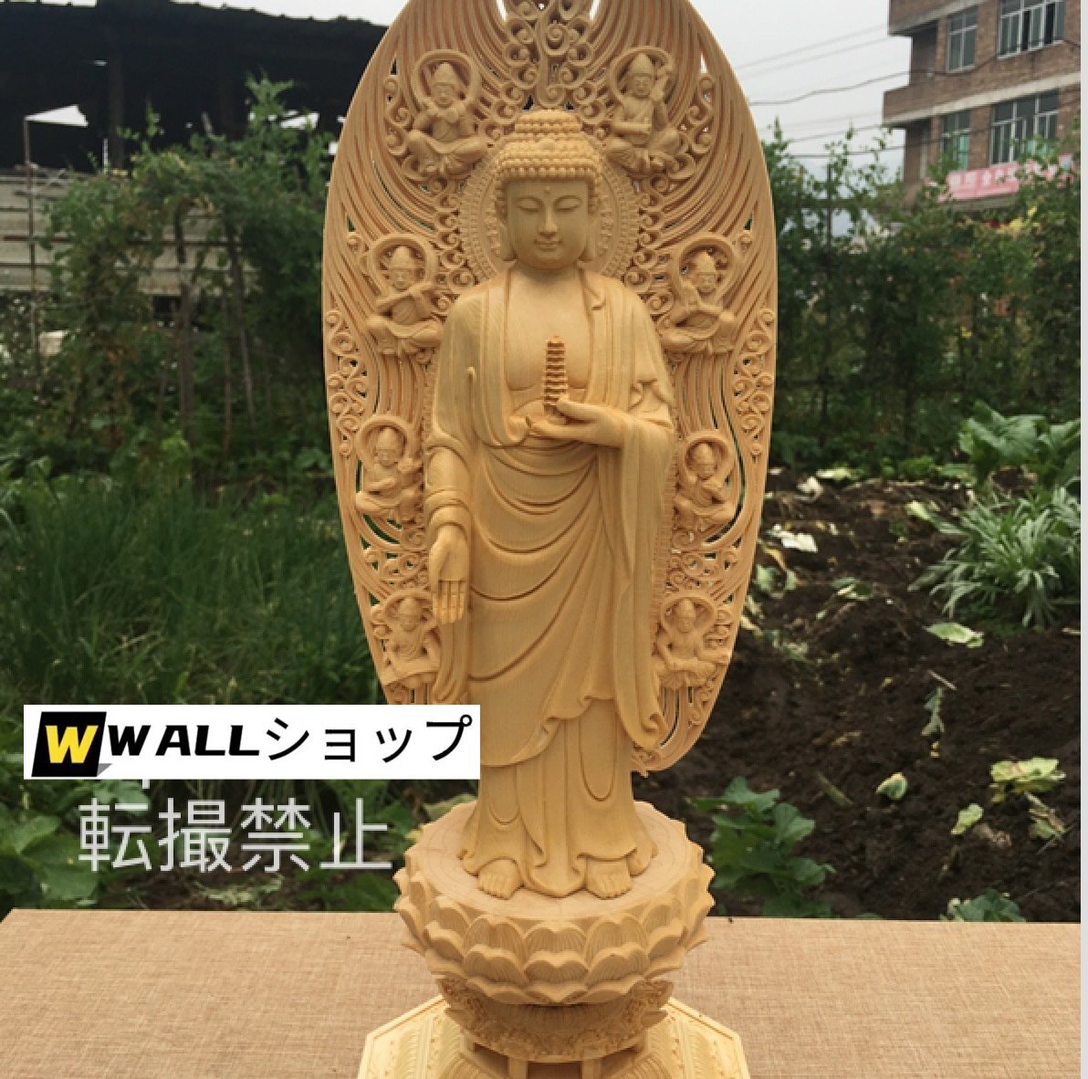 東方三聖立像 総檜材 仏教美術 精密彫刻 仏像 仏師で仕上げ品 高さ43cm