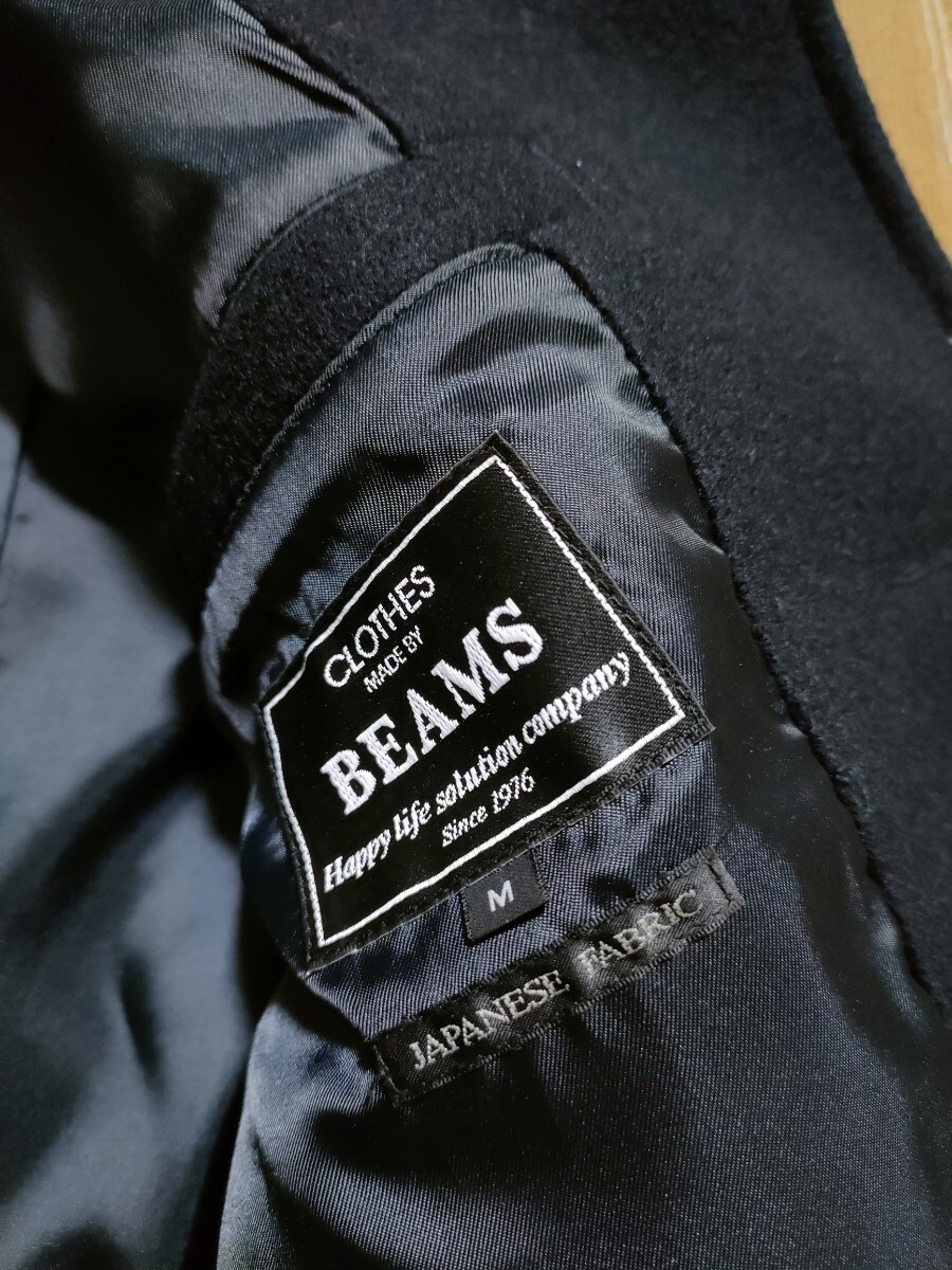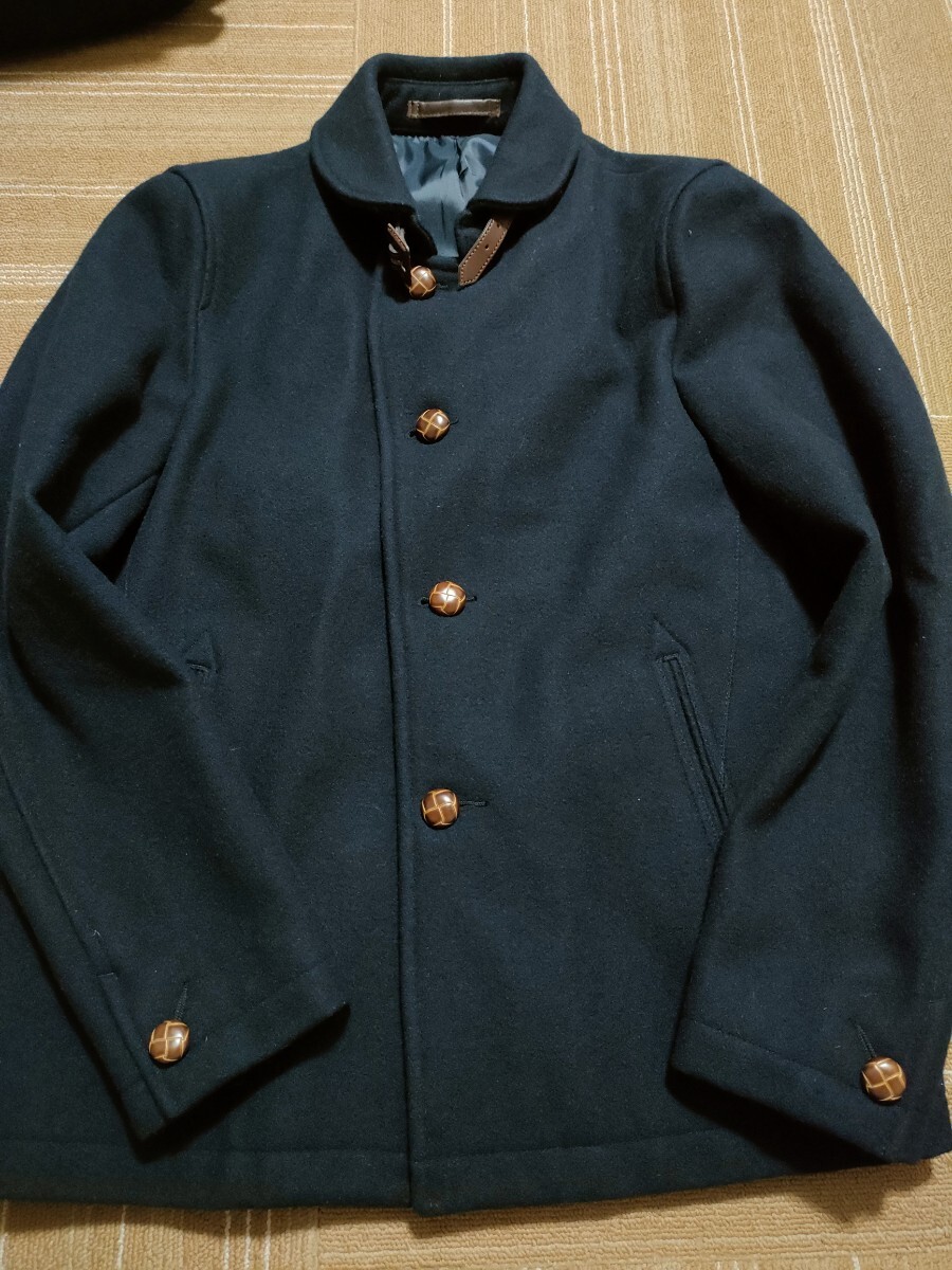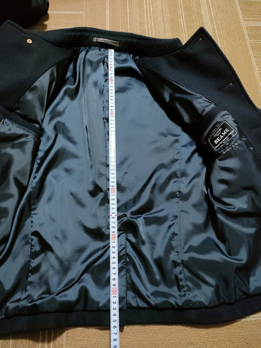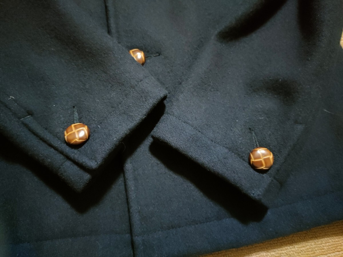 サイズ:M 美品 ビームス 胡桃ボタン BEAMS コート ジャケット くるみ ウール 牛革 レザー ウール メルトン  ネイビー ショートコート