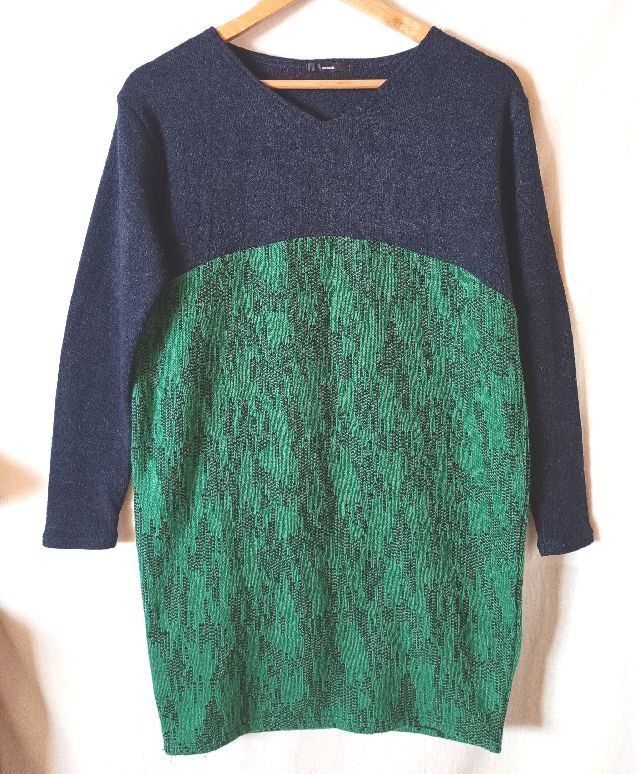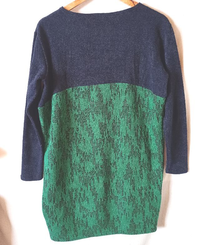 osmosis オズモーシス 切り替えニットチュニック ワンピース サイズONE フリーサイズ ネイビー グリーン