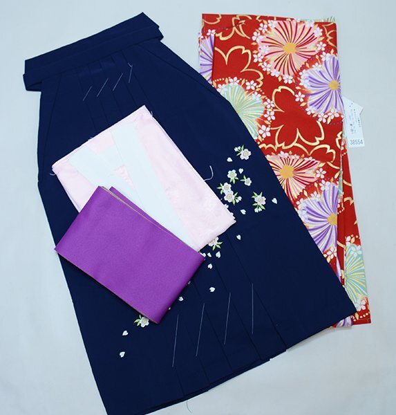 項目 | 二尺袖着物袴フルセット ・二尺袖着物絵羽柄 ・二尺袖長襦袢(半襟付き) ・重ね衿(着物に縫いつけられています) ・袴 ・袴下帯(浴衣帯にも使用できます。) |