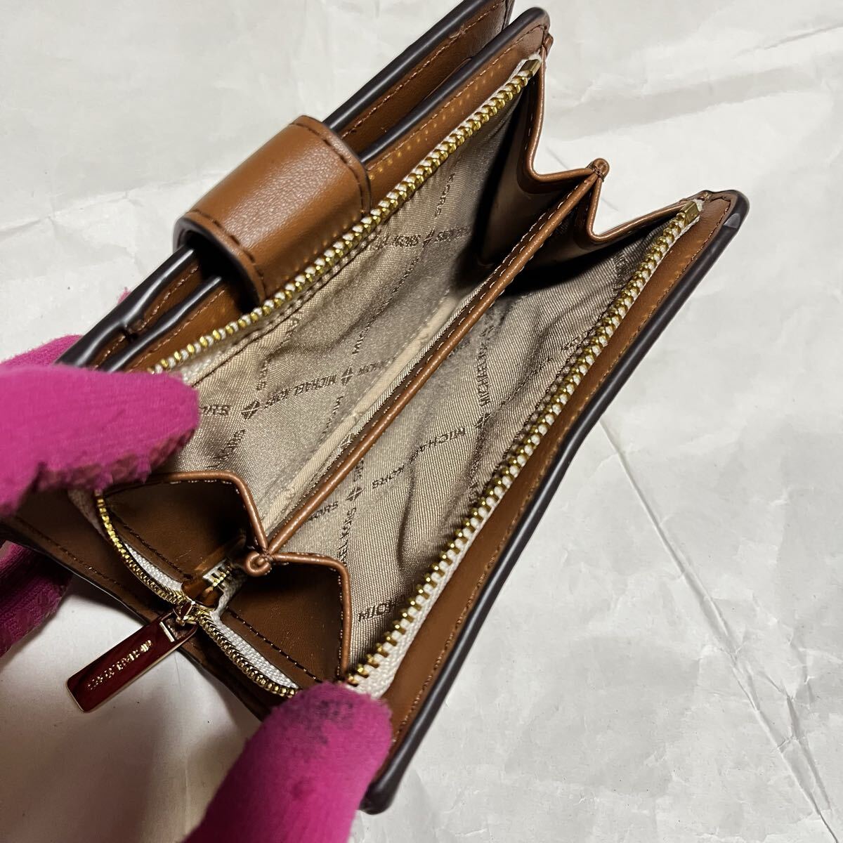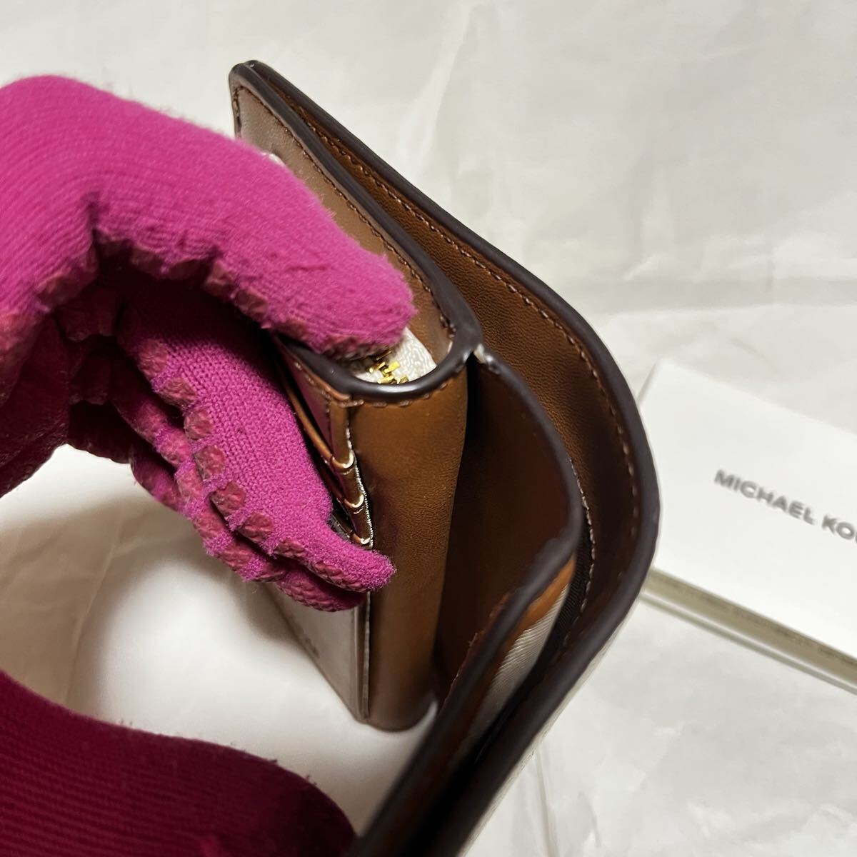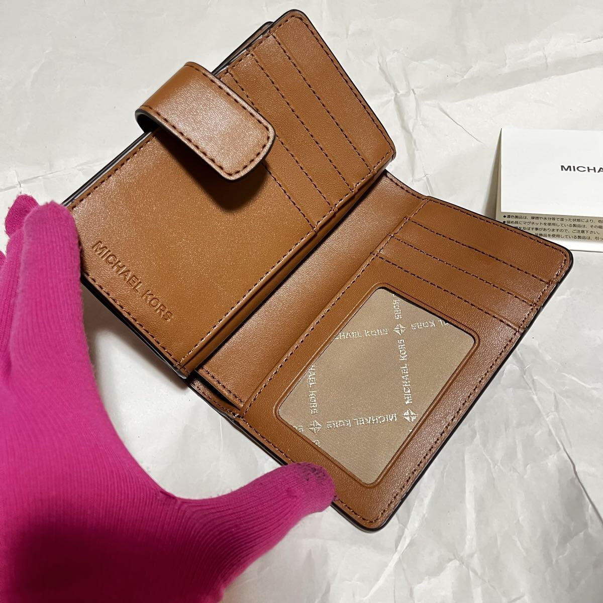 MKのモノグラム柄が上品な二つ折り財布。大きめの小銭入れに豊富なカードスロットで収納力◎飽きのこないでデザインは長く愛用頂けるアイテムです。