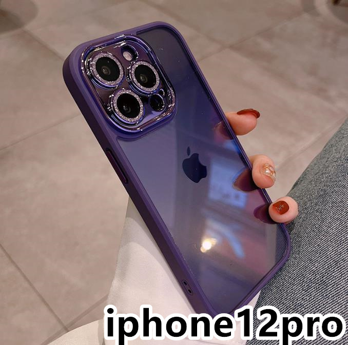 iphone12proケース カーバー レンズ保護付き 透明 お洒落 韓国 軽量 ケース 耐衝撃 高品質 紫